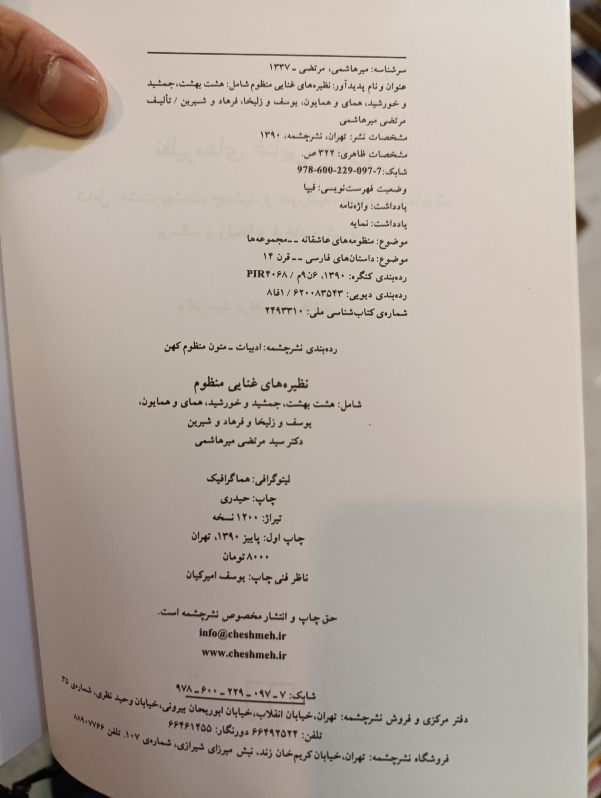 شامل هشت بهشت، جمشید و خورشید ، همای و همایون ،یوسف و زلیخا، فرهاد و شیرین