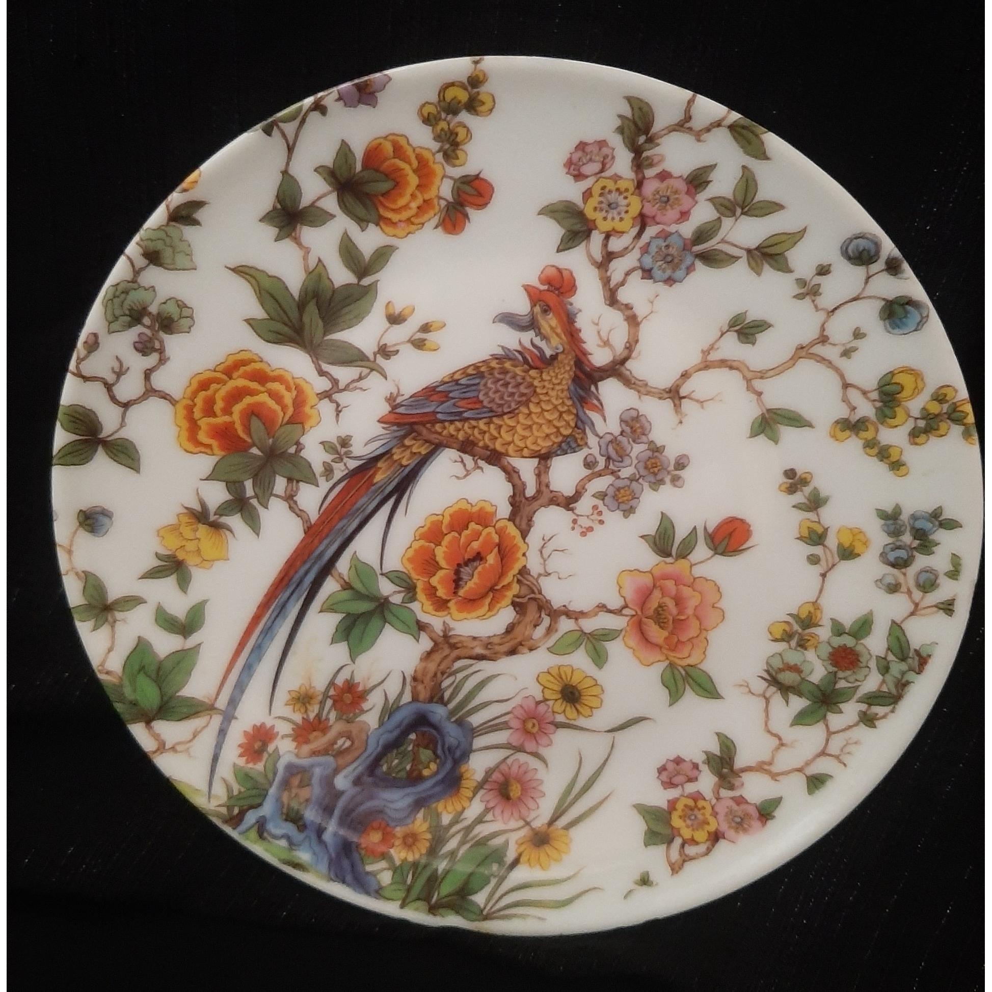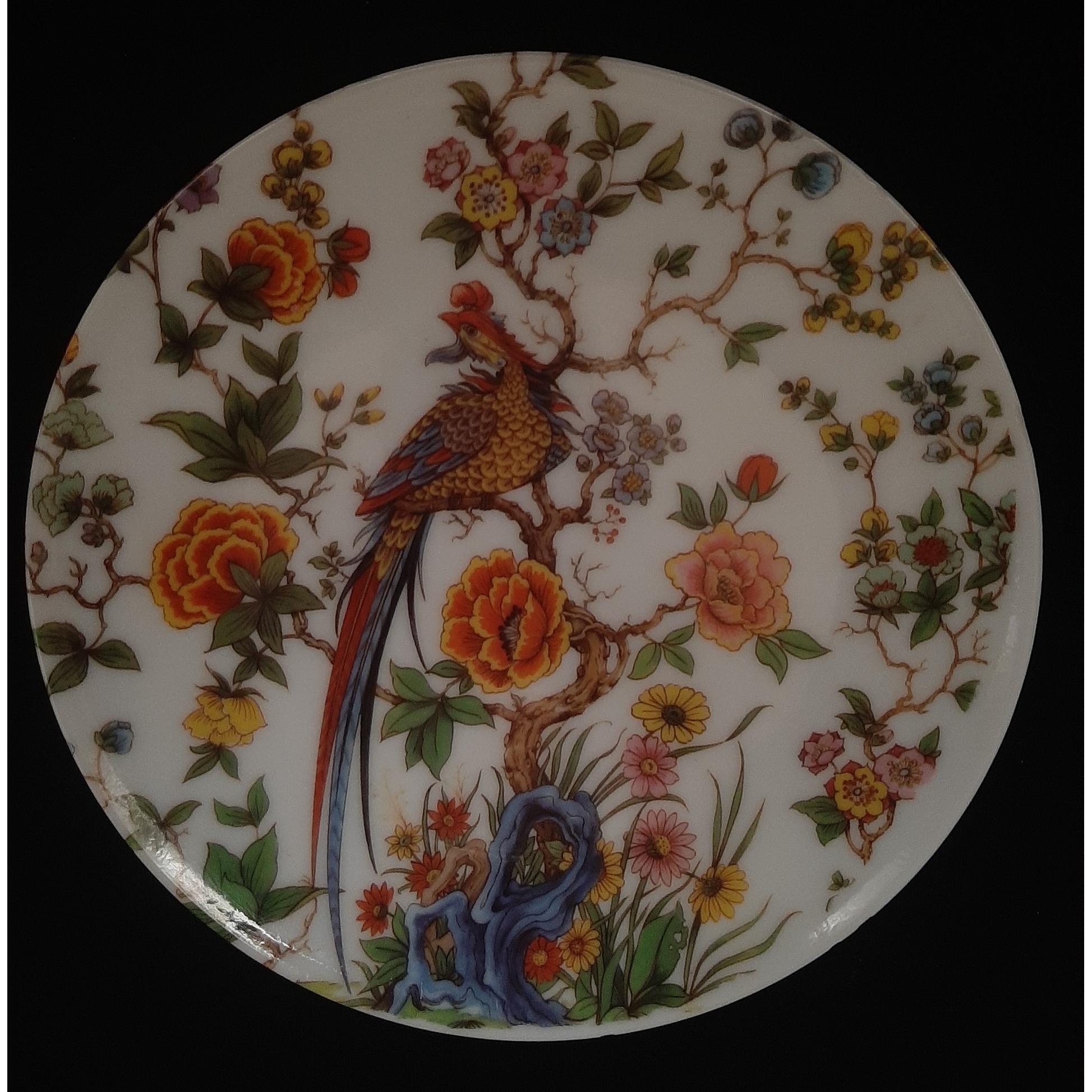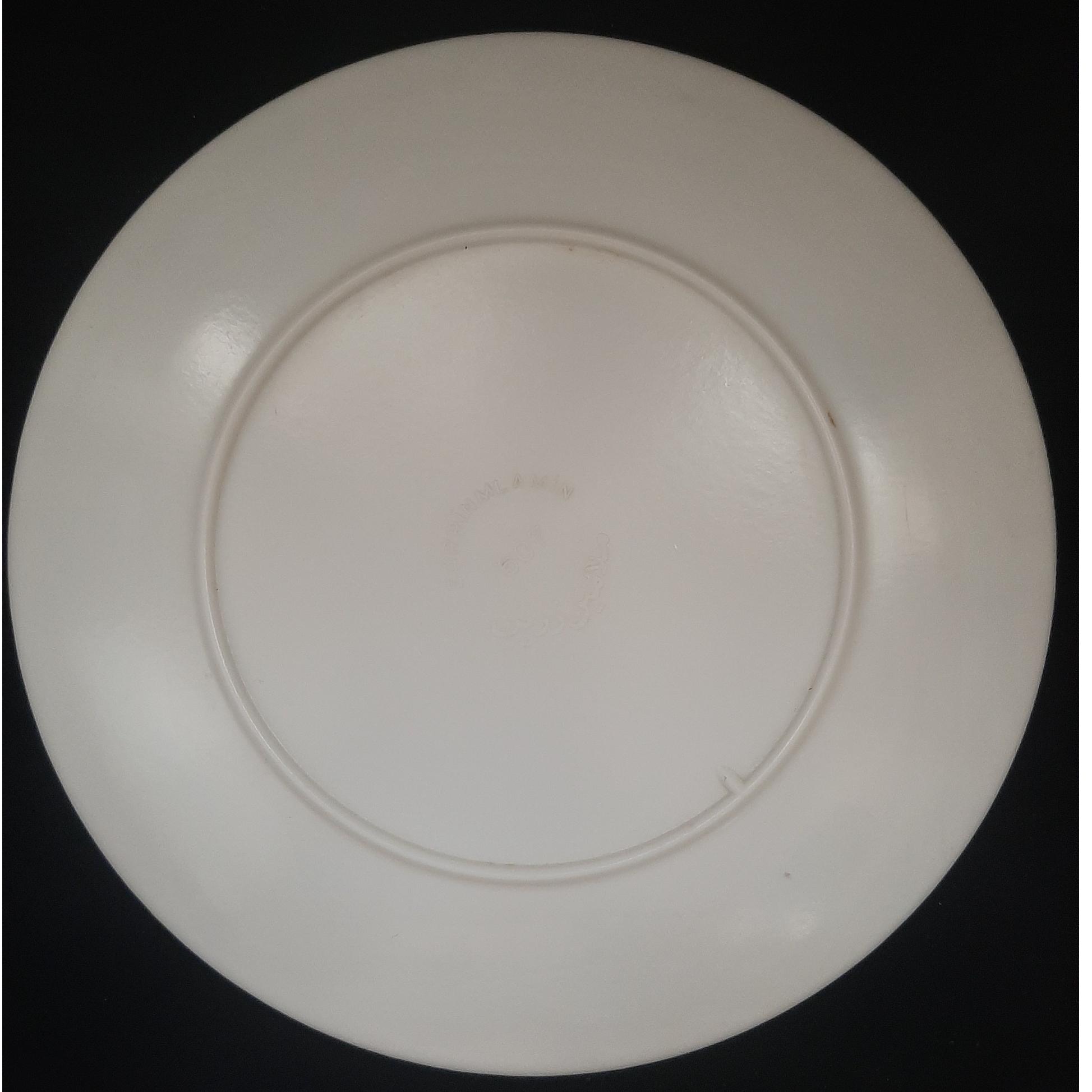 یک عدد پیش دستی کوچک ملامین قطر 16 دست دوم گل و مرغ خط و خش با تکان دادن دیده میشود چاپ کمی در گوشه نگرفته
