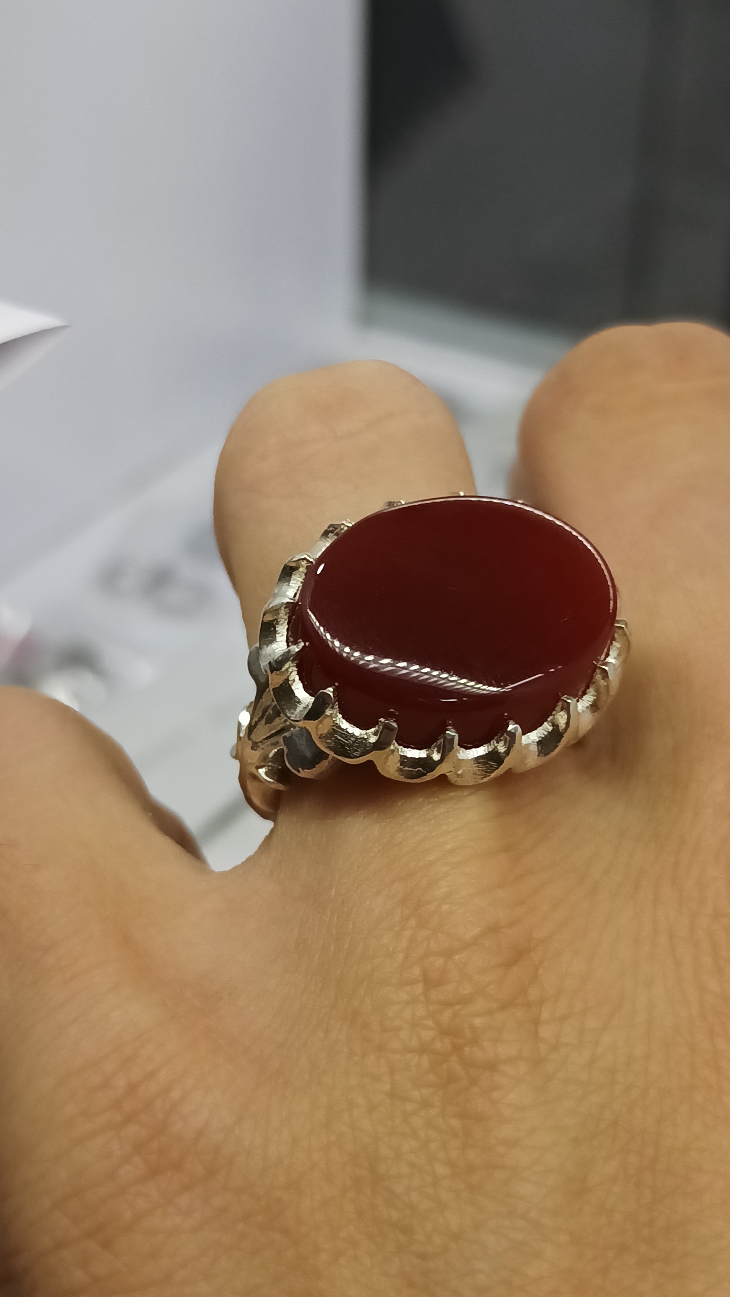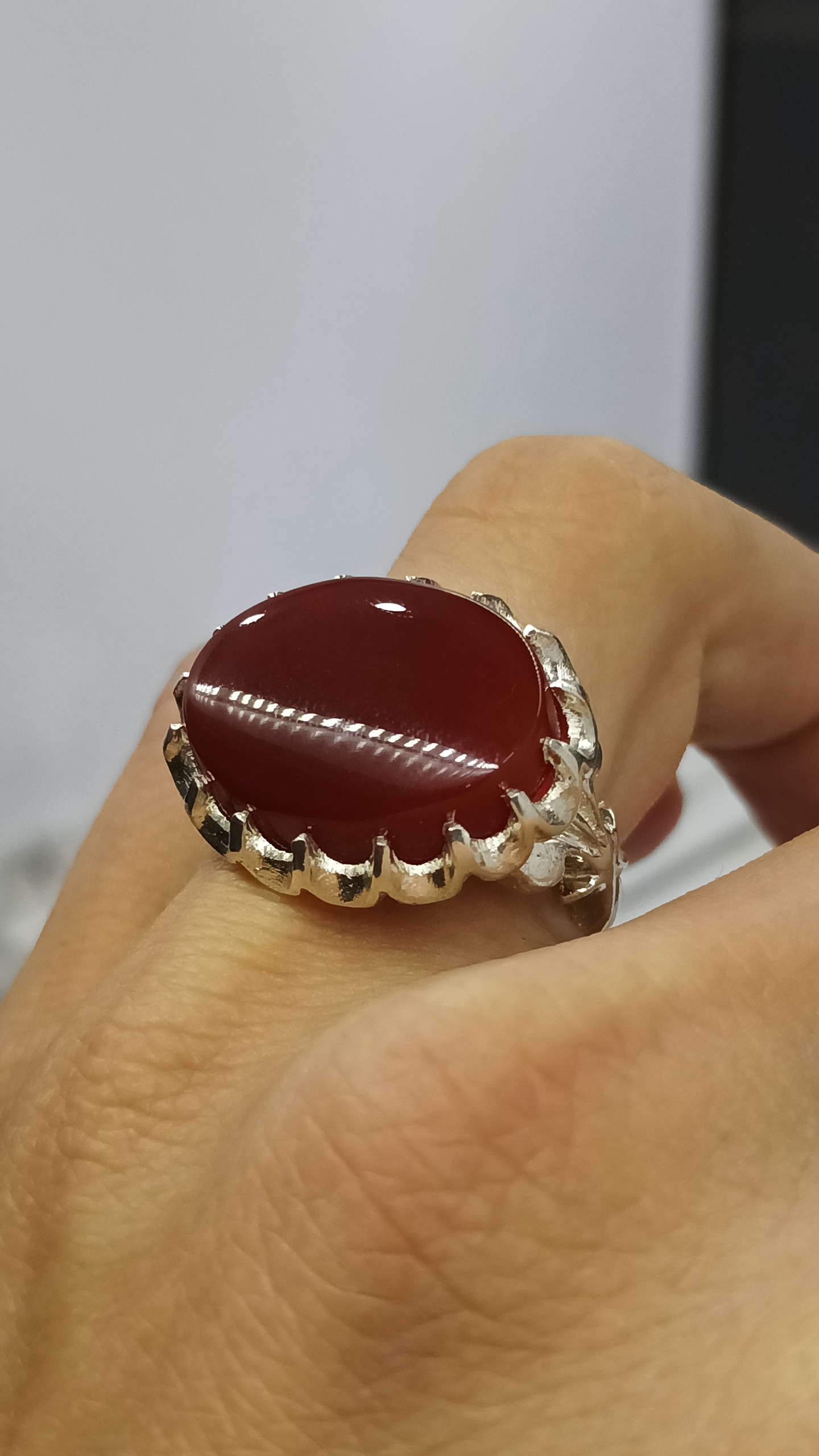 انگشتر نقره عیار بالا با گوهر عقیق یمنی اصلی