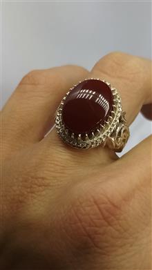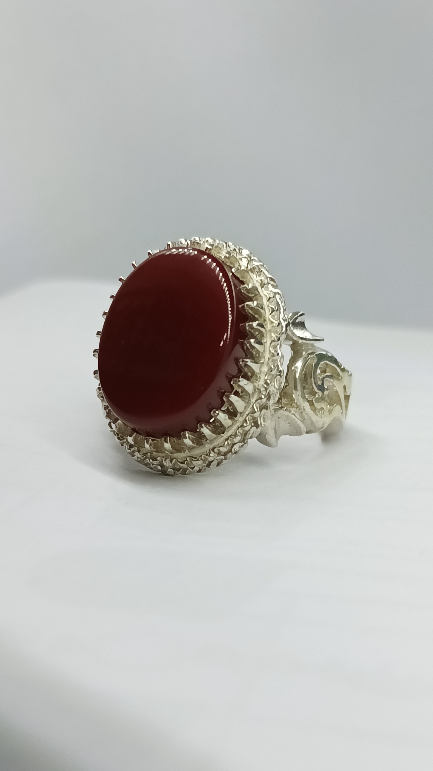 انگشتر نقره عیار بالا با گوهر عقیق یمنی اصلی