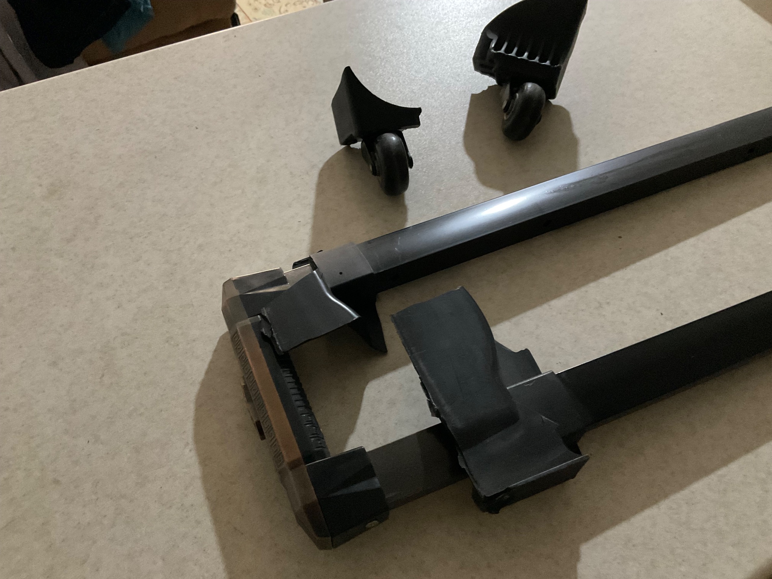 قطعات فقط شامل1_ 4 چرخ بزرگ و 2- یک چرخ کوچک و 3- یک قفل رمز دار و 4- دو دسته و 5- یک دستگیره حرکت می باشند و شامل چمدان نمی شود