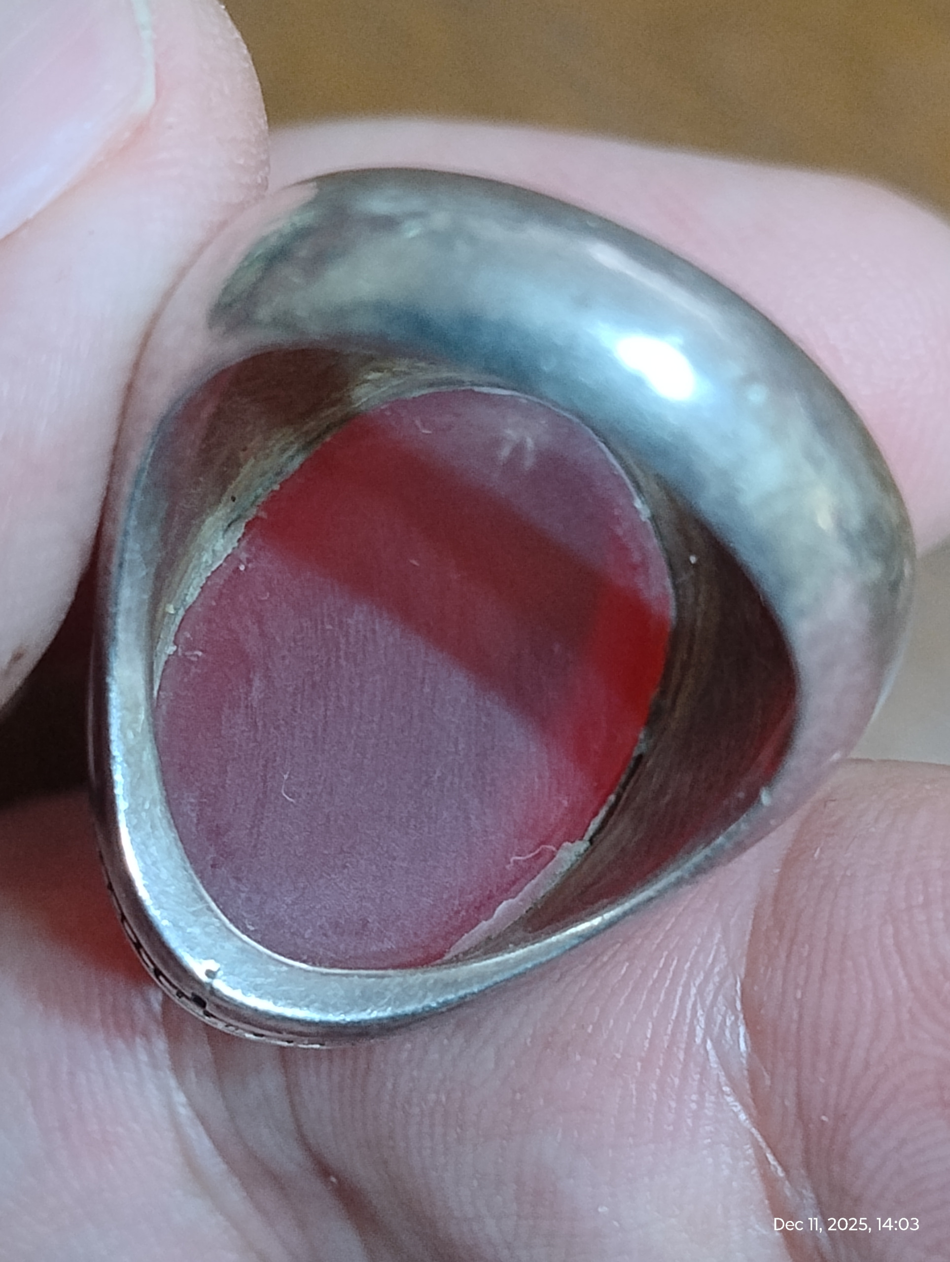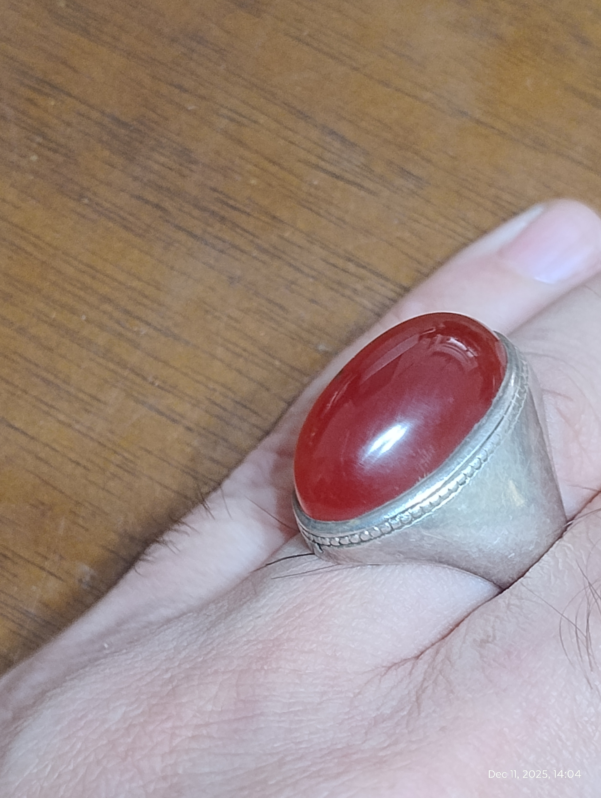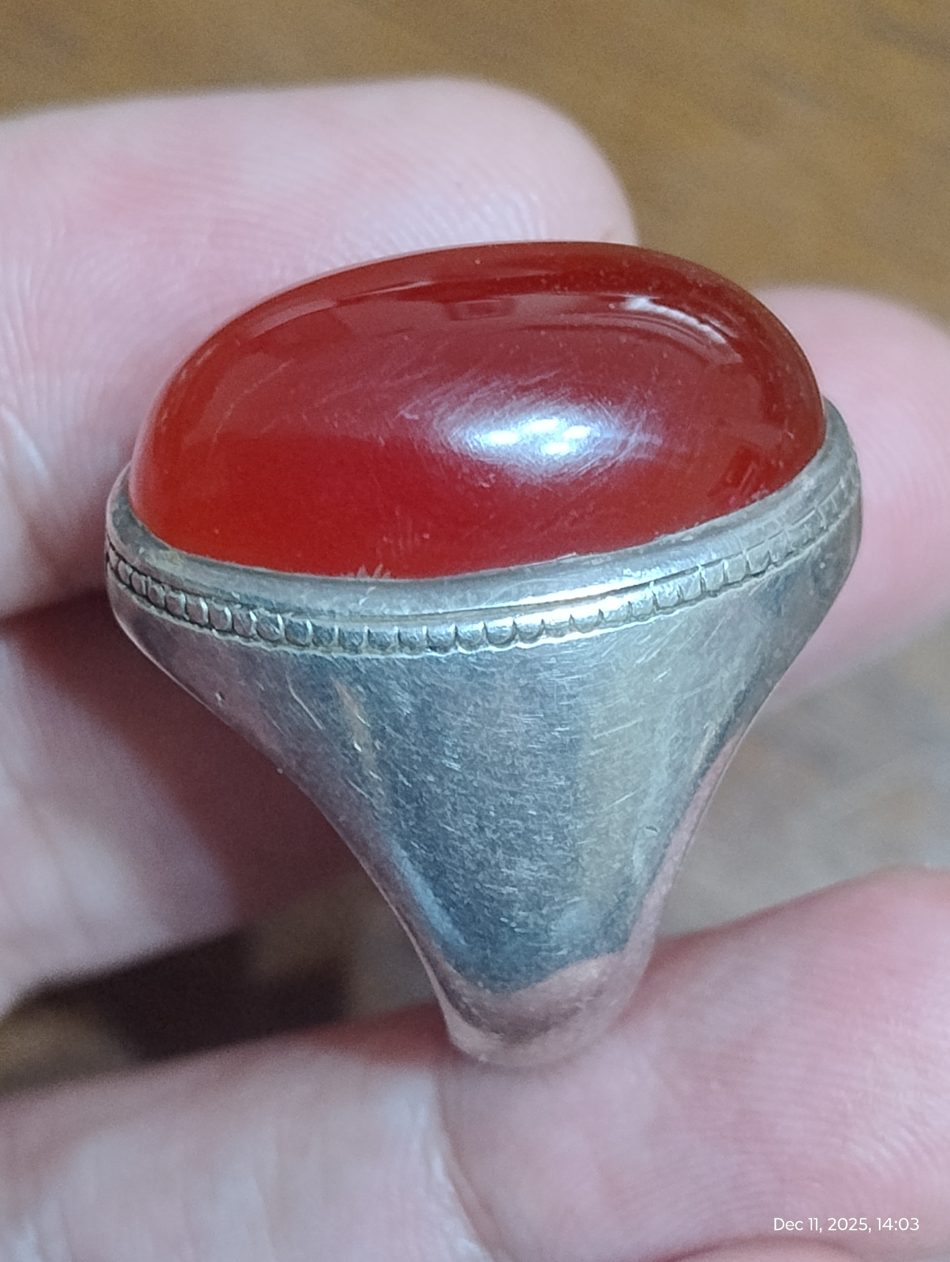 انگشتر بسیار زیبا و فنی استاد دانیال کرمانشاه و عقیق یمنی کهنه تک زغال