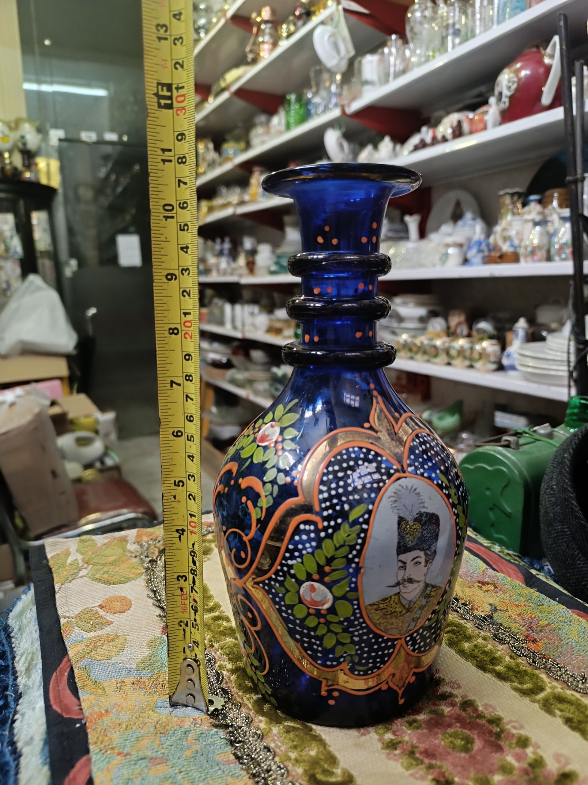 تنگ بلور آبی ، ناصرالدین شاهی ، درب نیزه ای ، یه کار واقعا قدیمی و آنتیک ، کیفیت و ابعاد مطابق تصویر