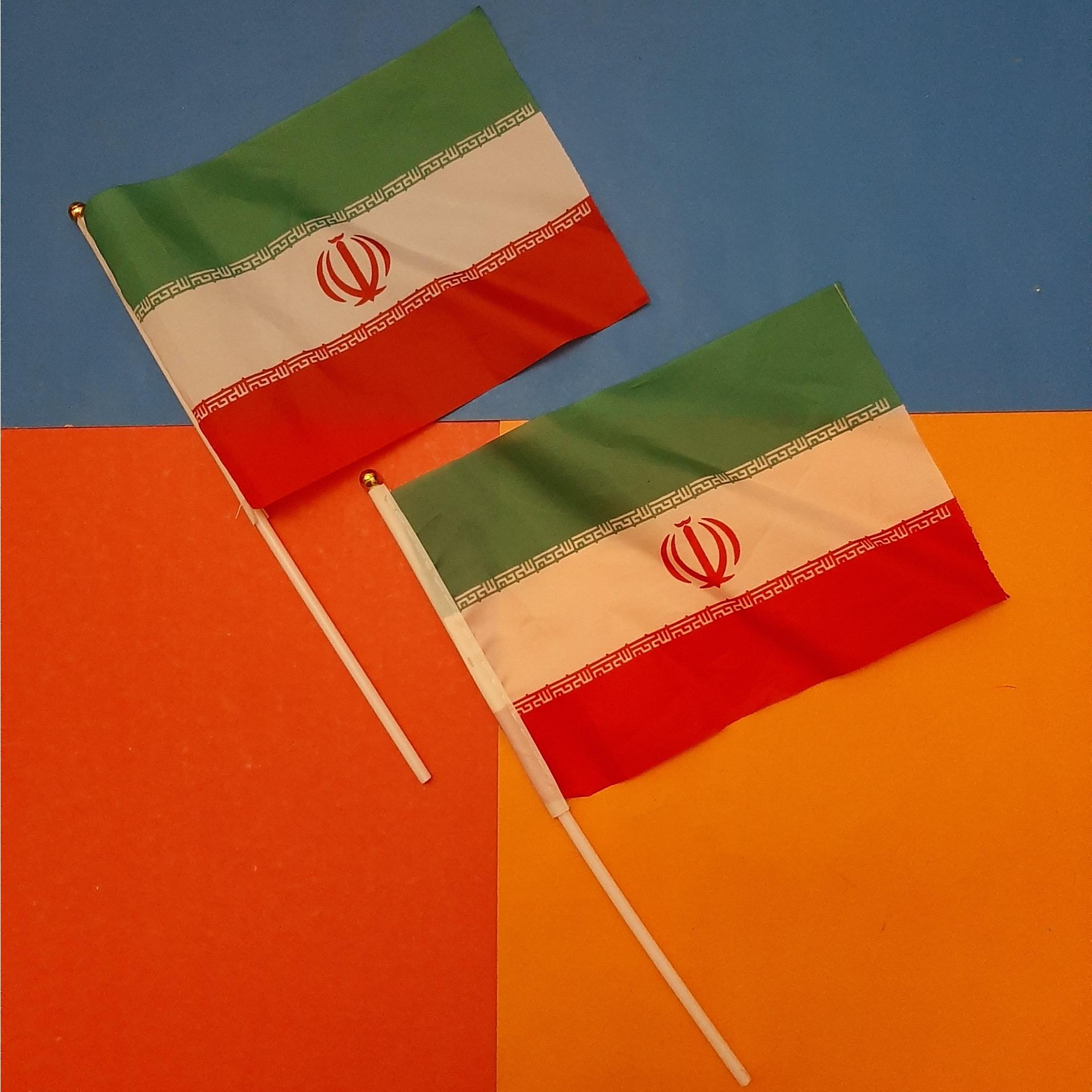 یک عدد پرچم ایران . جنس پرچم پارچه ، چاپ دو طرفه . سایز پرچم 15 × 22 سانتی متر و سایز میله پرچم 30 سانتی متر . قیمت درج شده برای یک عدد پرچم است .