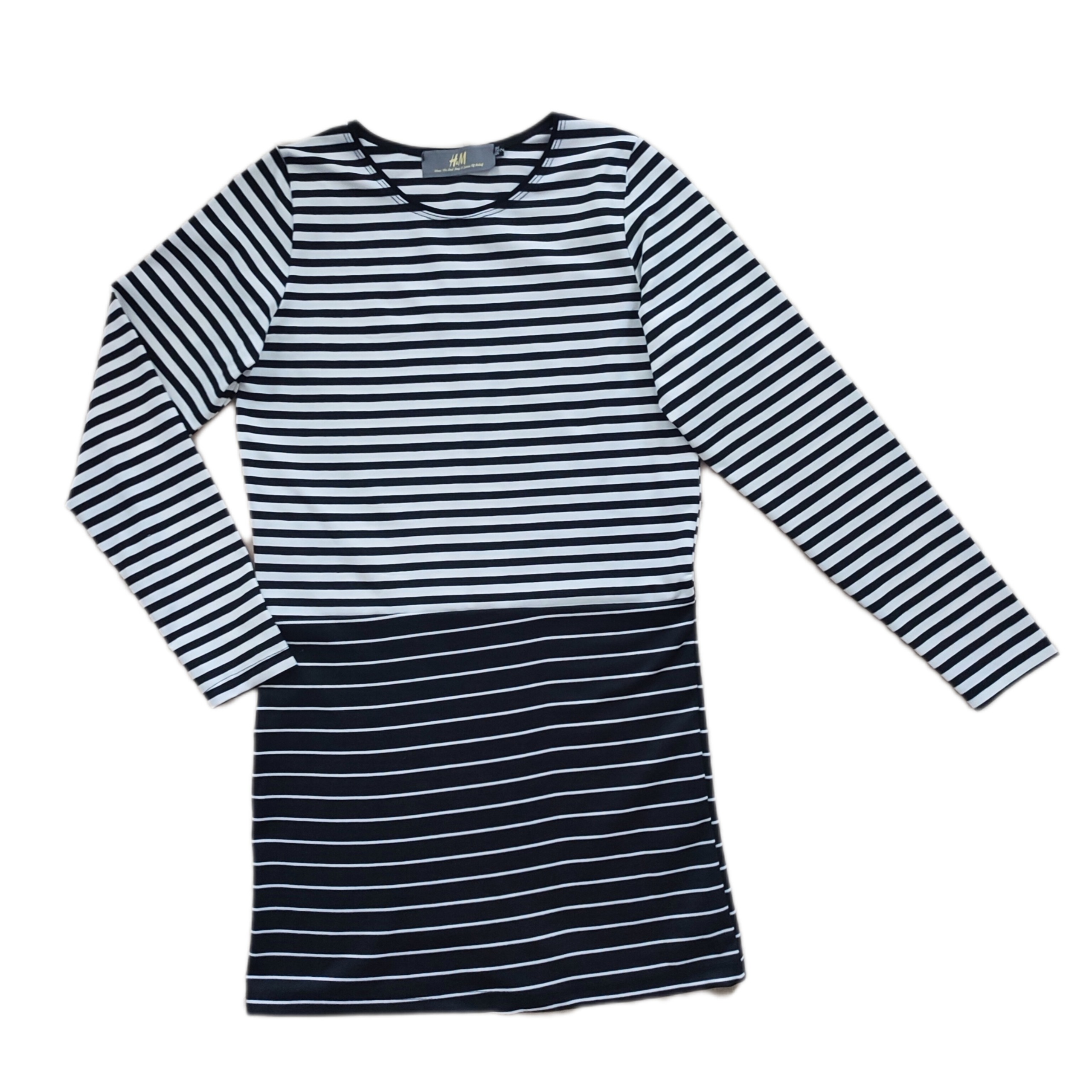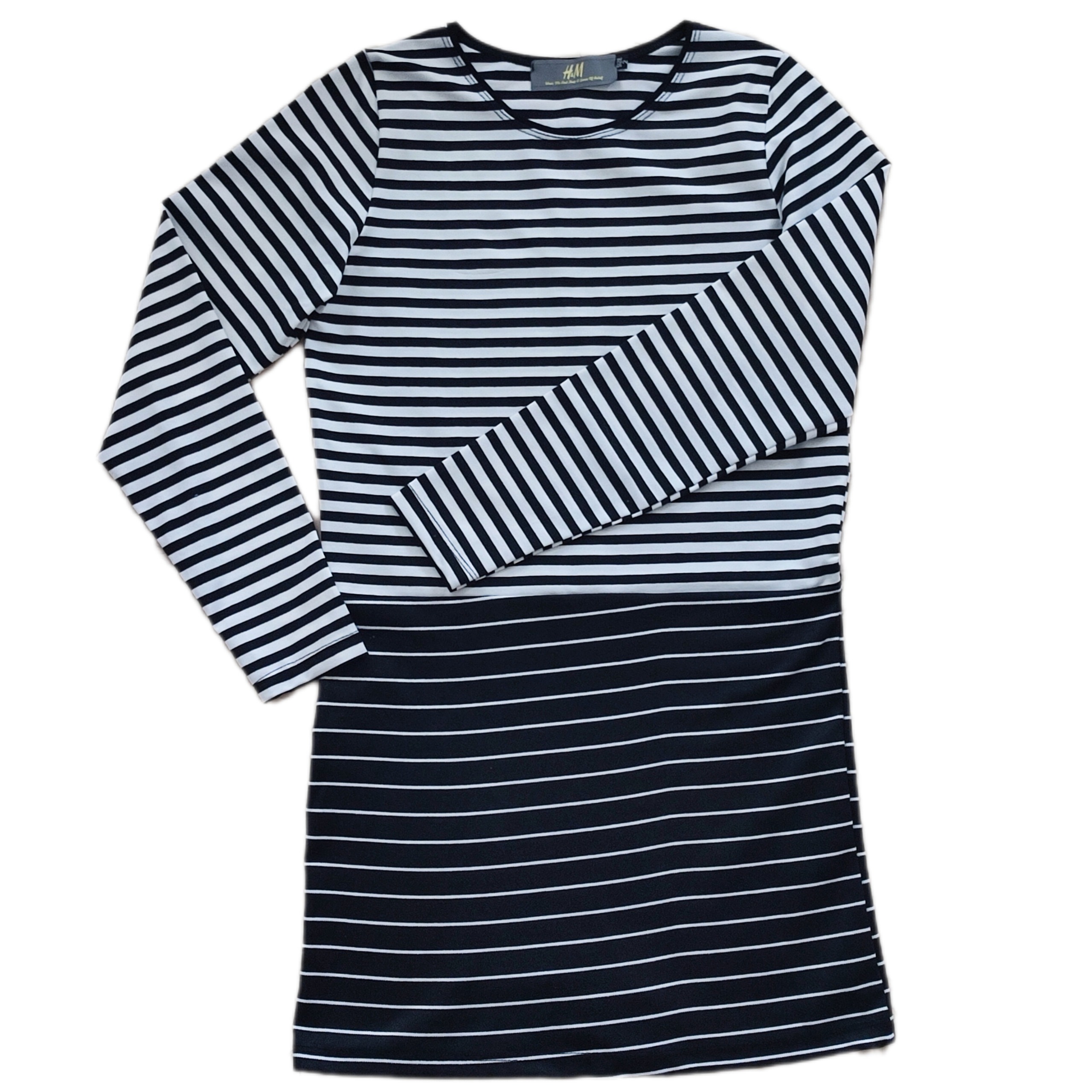 بلوز بلند یا تونیک راه راه سفید مشکی کشی طرح HM