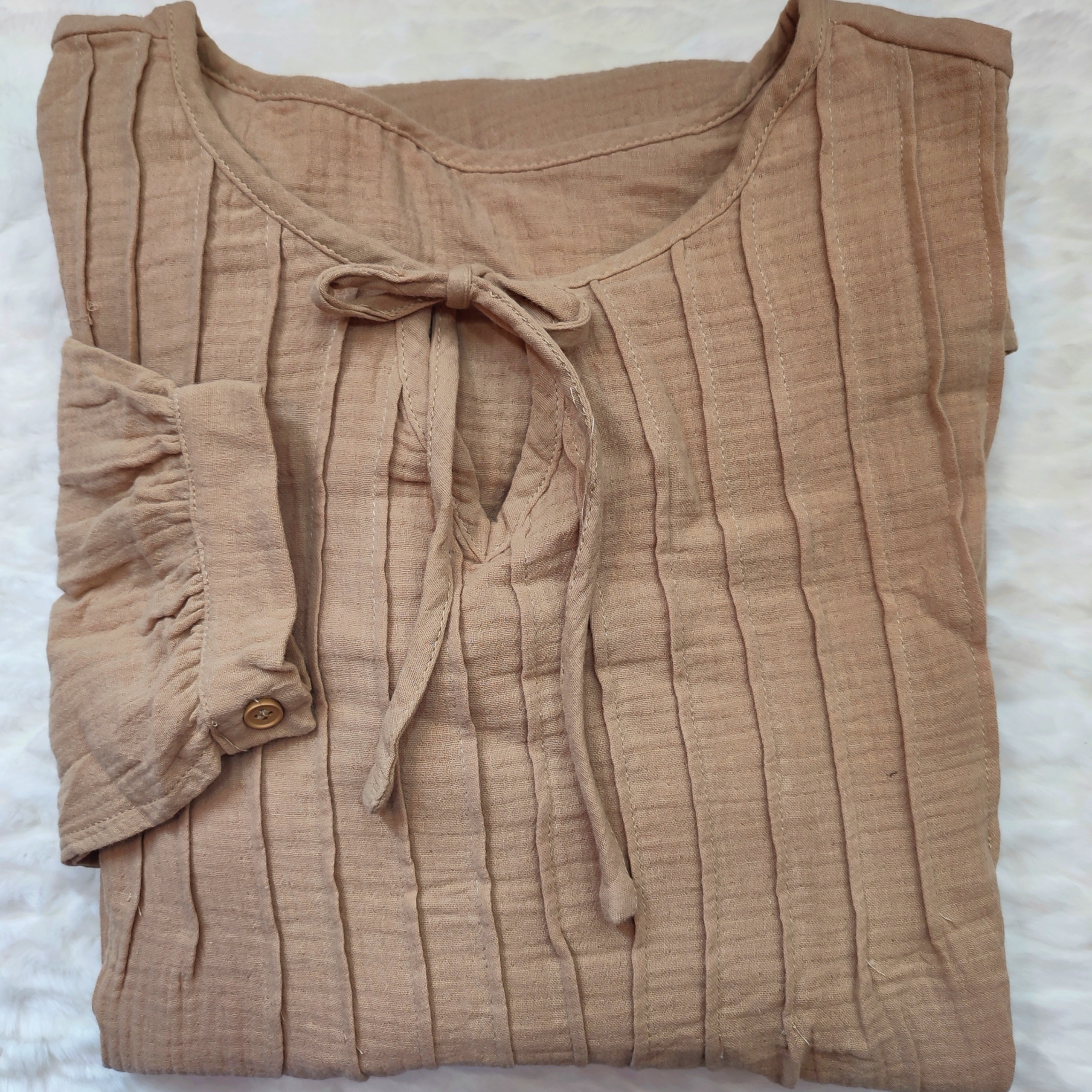 شومیز مانتویی وارداتی کرم نسکافه ای