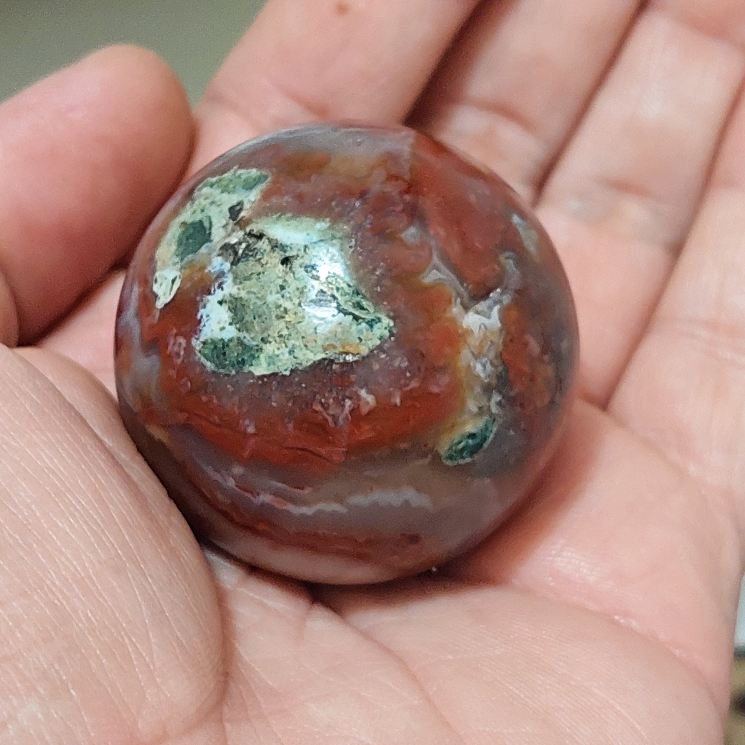 گوی 45 میلیمتری سنگ عقیق شجر سرخ تراش دست یه نمونه کار بینظیر و کمیاب فوق العاده خاص و زیبا
