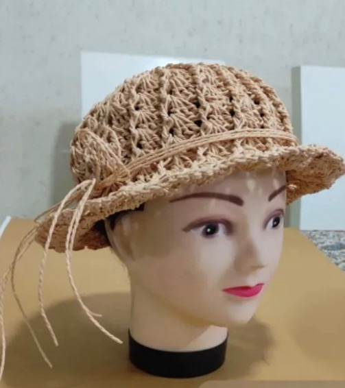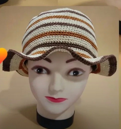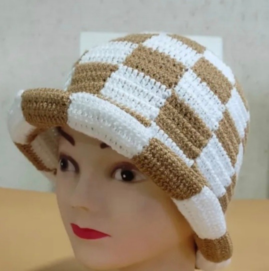 کلاه های باکت ساحلی با نخ رافیا ترک بافته شده و دومدل دیگر شطرنجی و راه راه با کاموای ترک بافته شدن