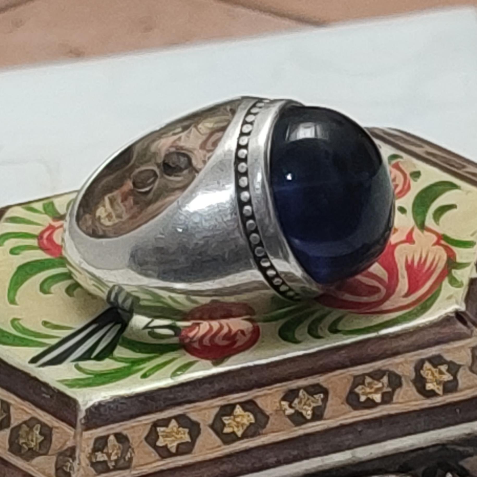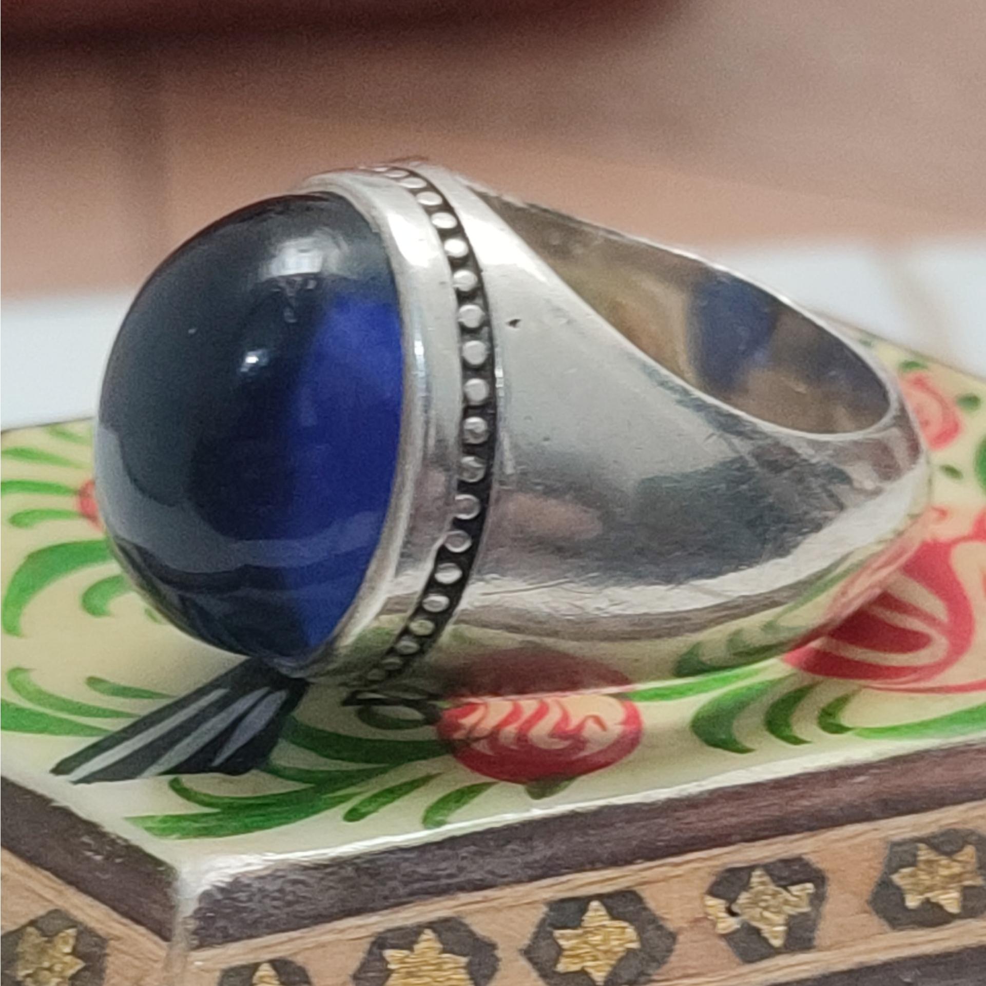 انگشتر نقره دست ساز باسنگ لعل با رنگ ابی خیلی زیباست با وزن 24گرم کالا کپی عکسها میباشد مرجوعی ندارم سوالی داشتید جواب داده میشود لطفاً قبل از خرید استعلام بگیرین