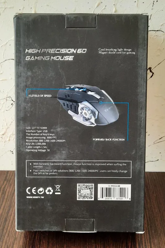 دارای 6 عدد کلید فیزیکی بر روی بدنه نظیر کلید تنظیم DPI، بک / فوروارد و با میزان ضربه پذیری 3 میلیون کلیک