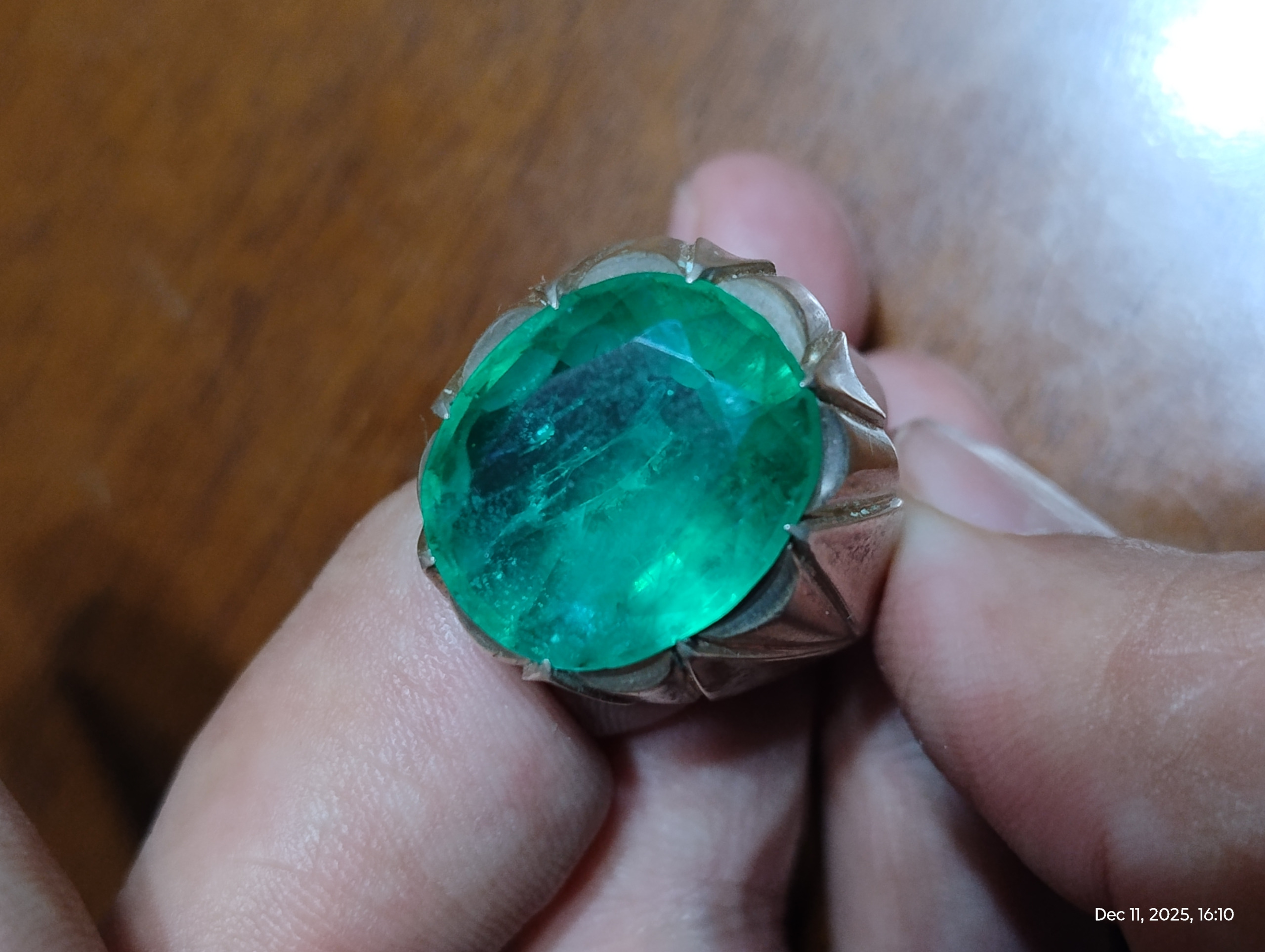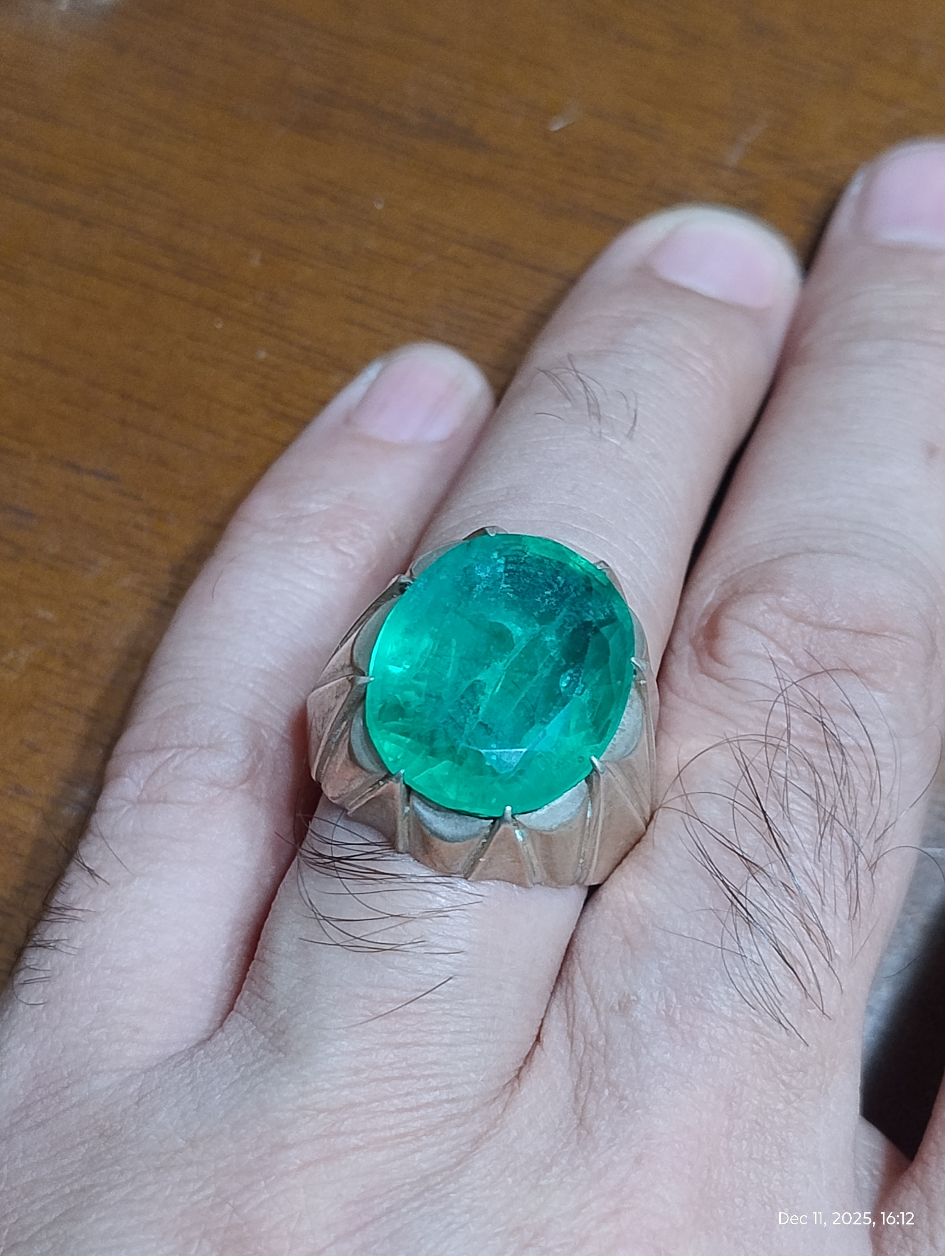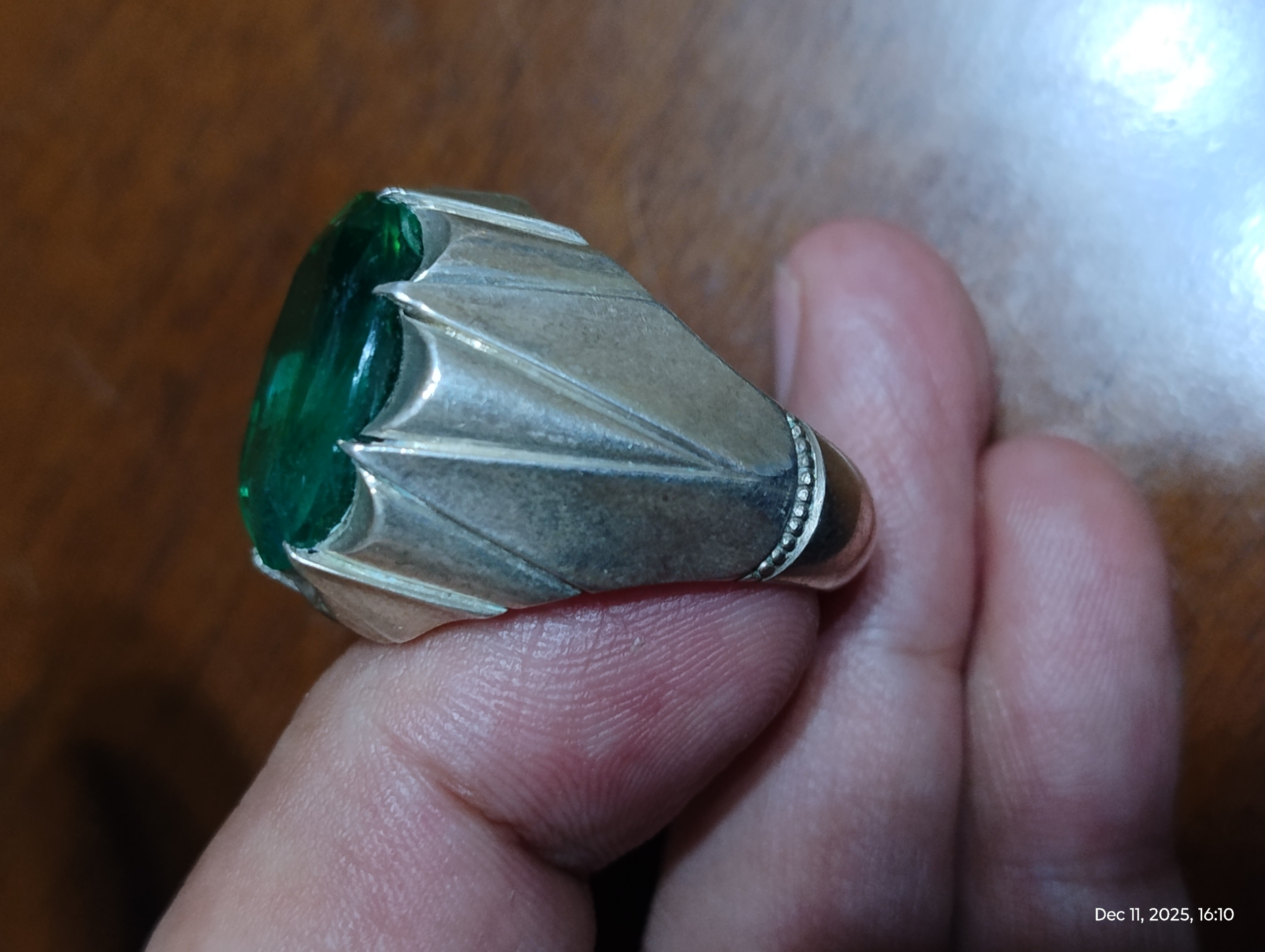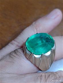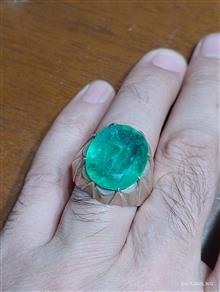 انگشتر سفارشی ساز خورشیدی استاد شهریار ( مهر ایران شهریار) با نگین زمرد اعلا و بسیار با کیفیت زمرد برزیلی خوش قواره و جوندار / بسیار مجلسی و زیباتر از تصاویر