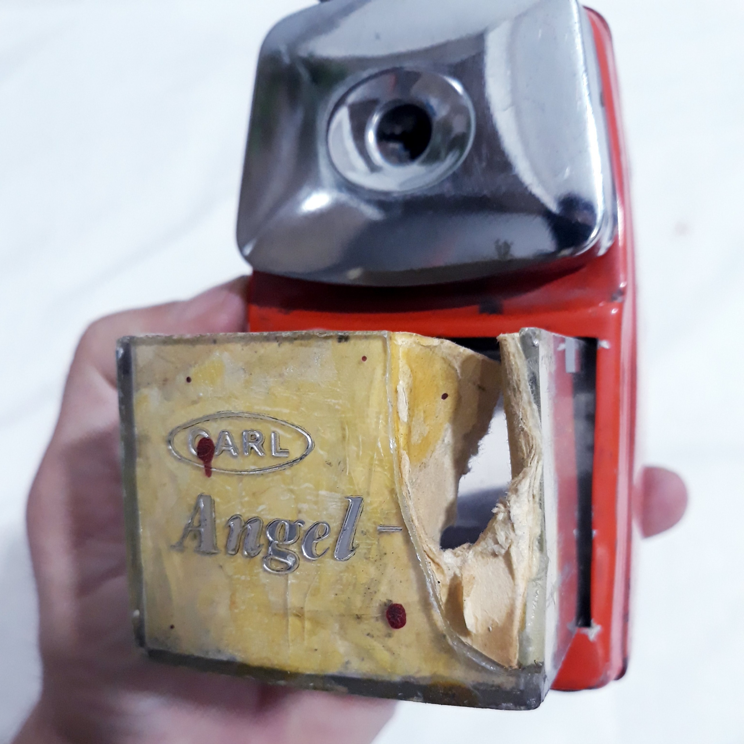 تراش فلزی سالمه فقط محفظه کشویی آشغال براده ازقسمت جلو کمی شکسته میشه چسب نواری چسبوند که براده نریزه زمین .همین ایراد داره فقط .