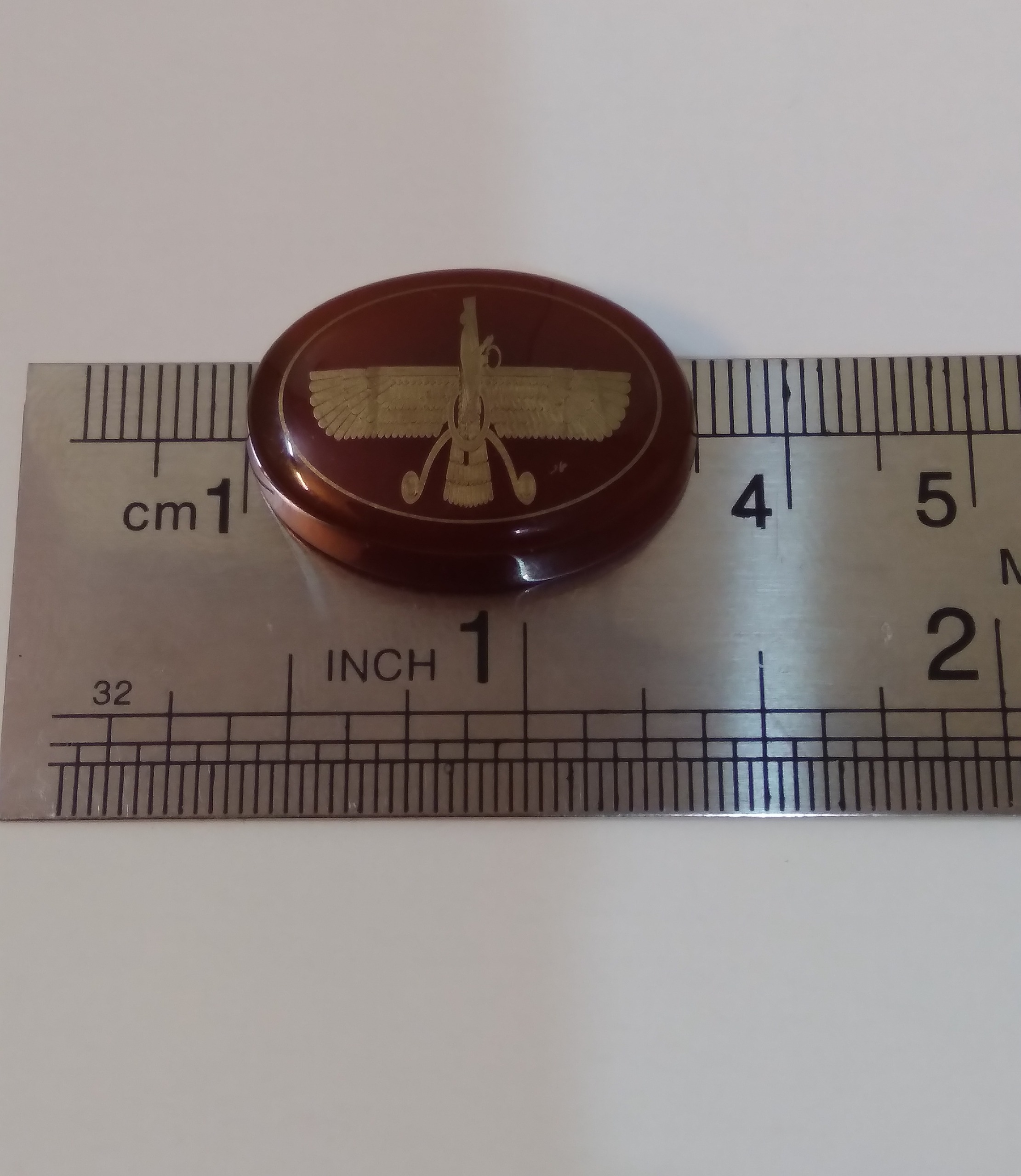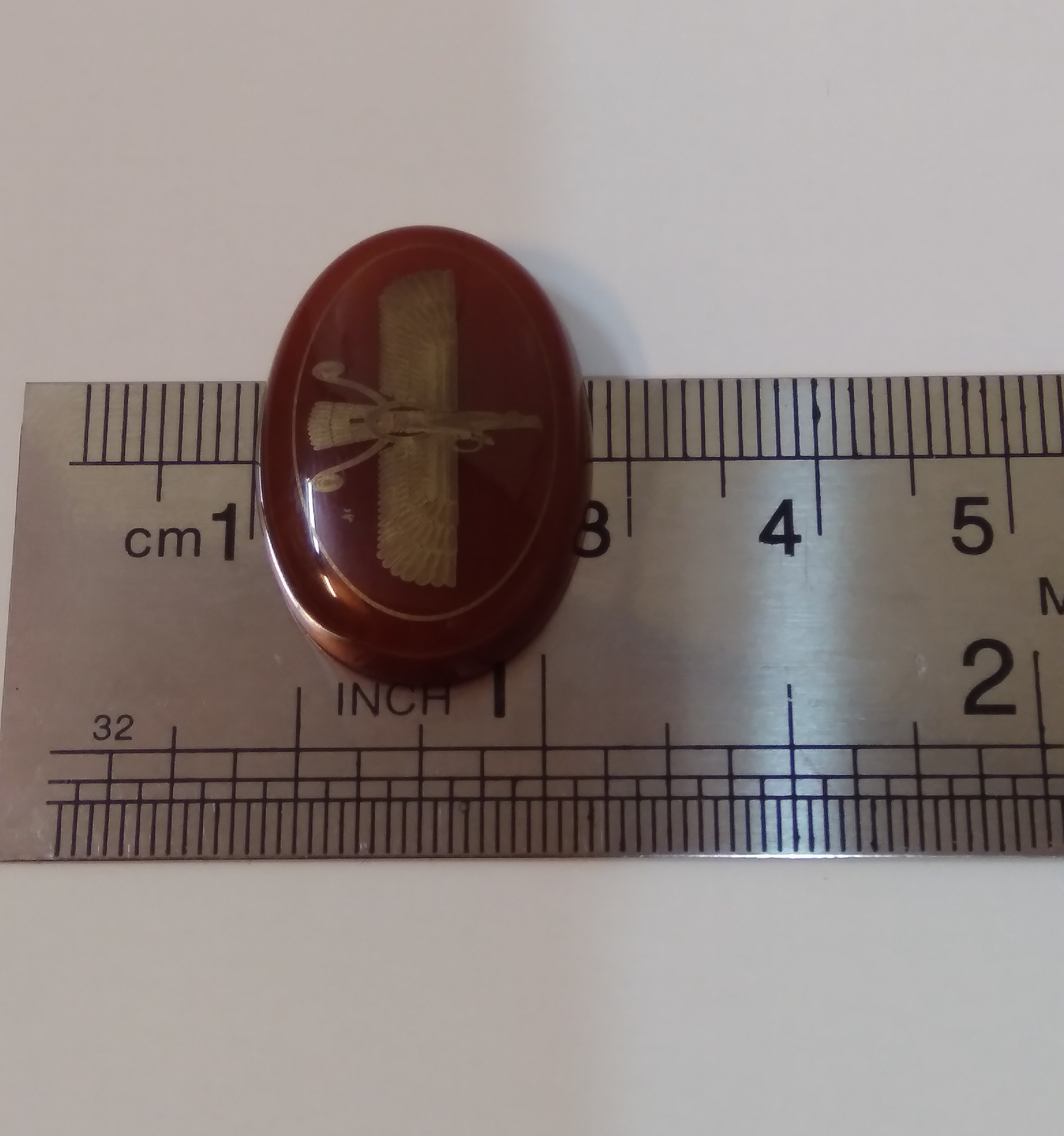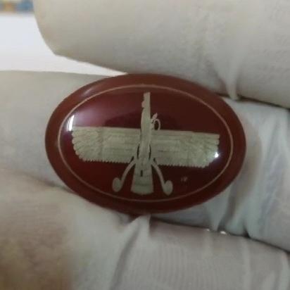 نگین عقیق سرخ حکاکی لیزری نقش باستانی زیبای فروهر بسیار خاص و کمیاب و منحصربه فرد
