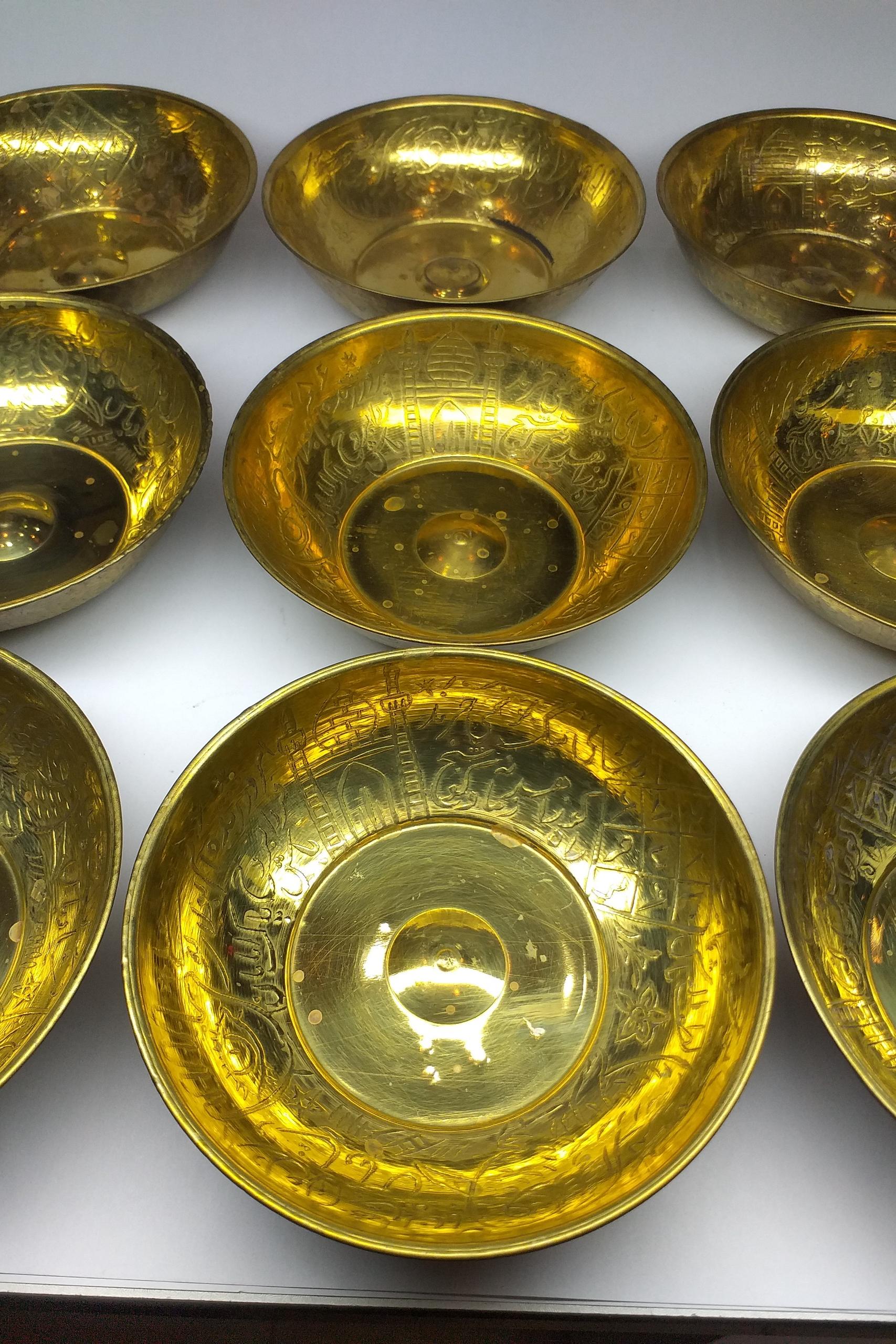یک مجموعه ی خاص از پیاله های فلزی زرد رنگ (به احتمال زیاد برنج ) با نقوش حکاکی شده ی سنتی و مذهبی به فروش میرسد. این پیاله های زیبا برای دکور بوفه انتخابی بی نظیر هستند.