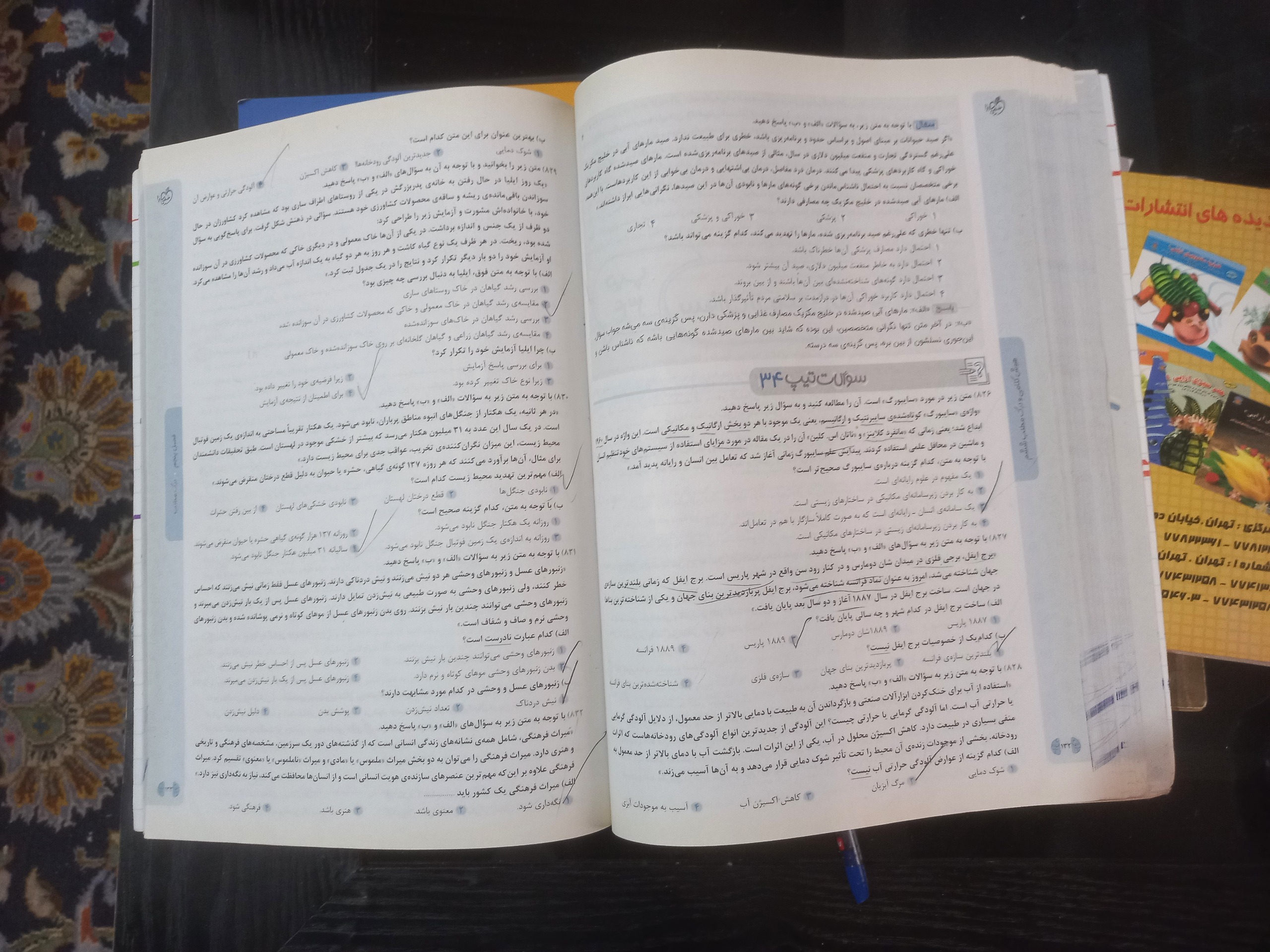 داخل کتاب صفحات با مداد نوشته و خط دارد