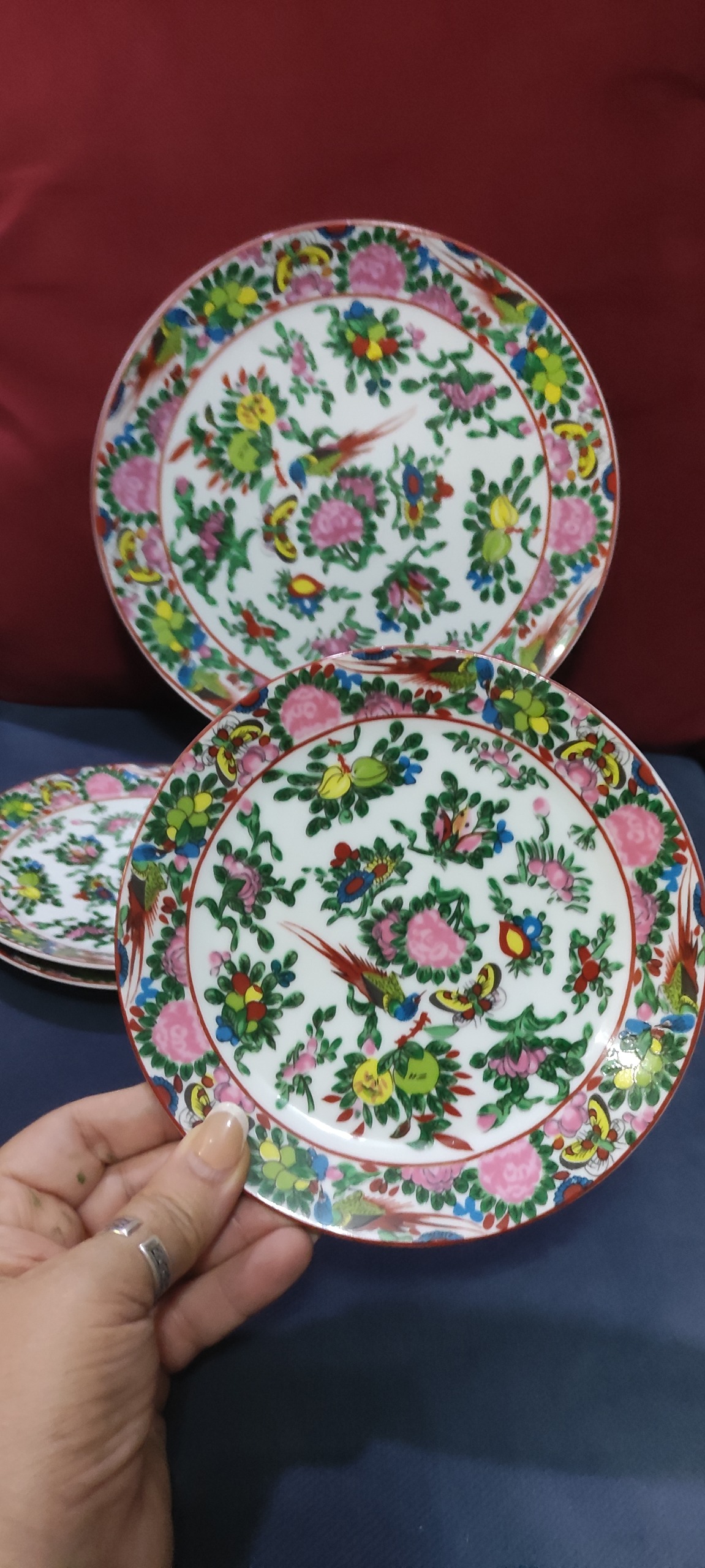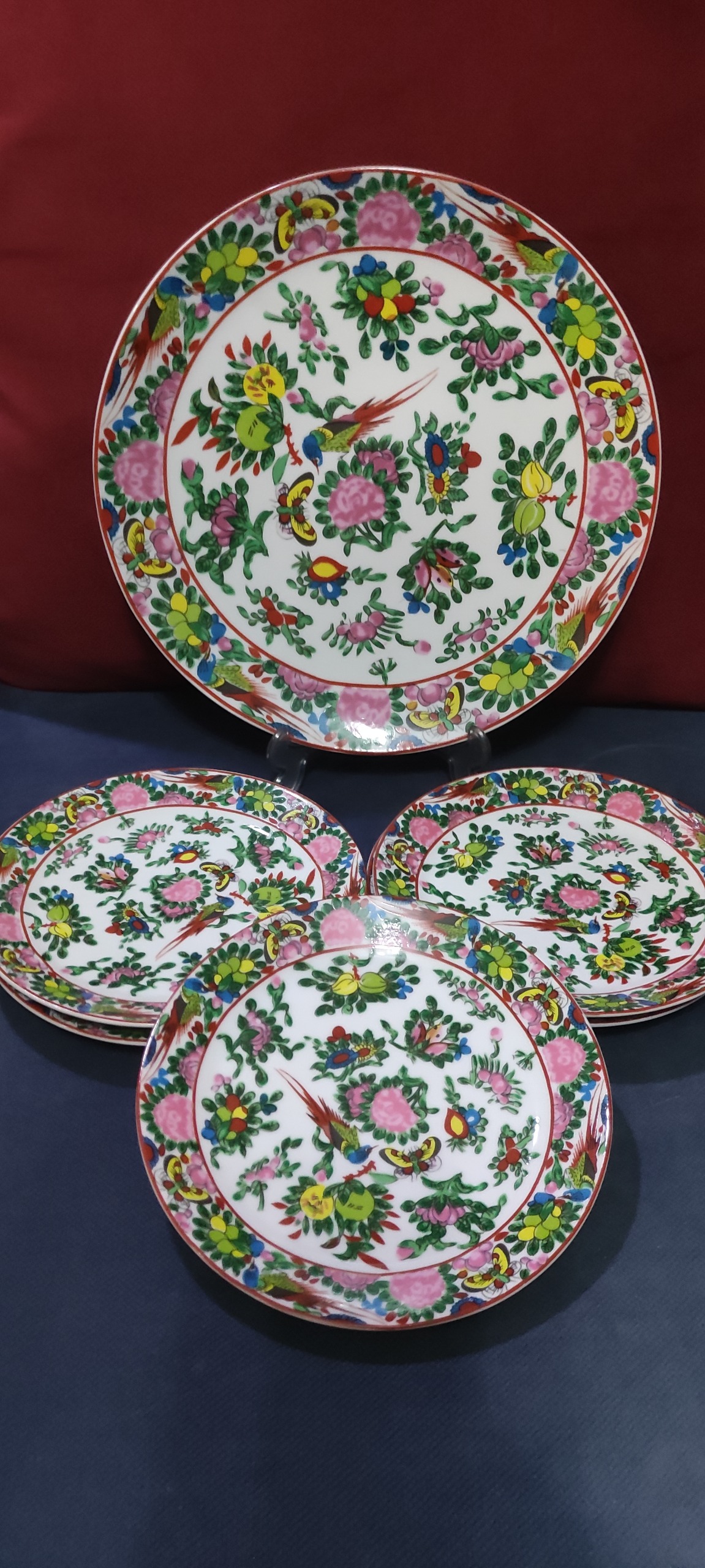 سرویس 7 پارچه شیرینی خوری، کیک خوری، خیار خوری گل مرغی بسیار قدیمی کمیاب و نایاب کلکسیونی و آنتیک و بسیار زیبا