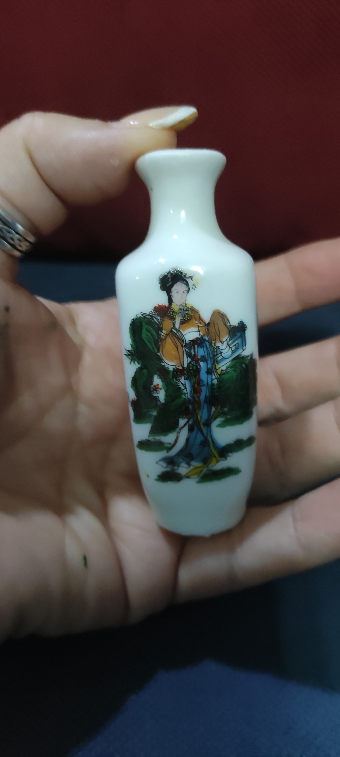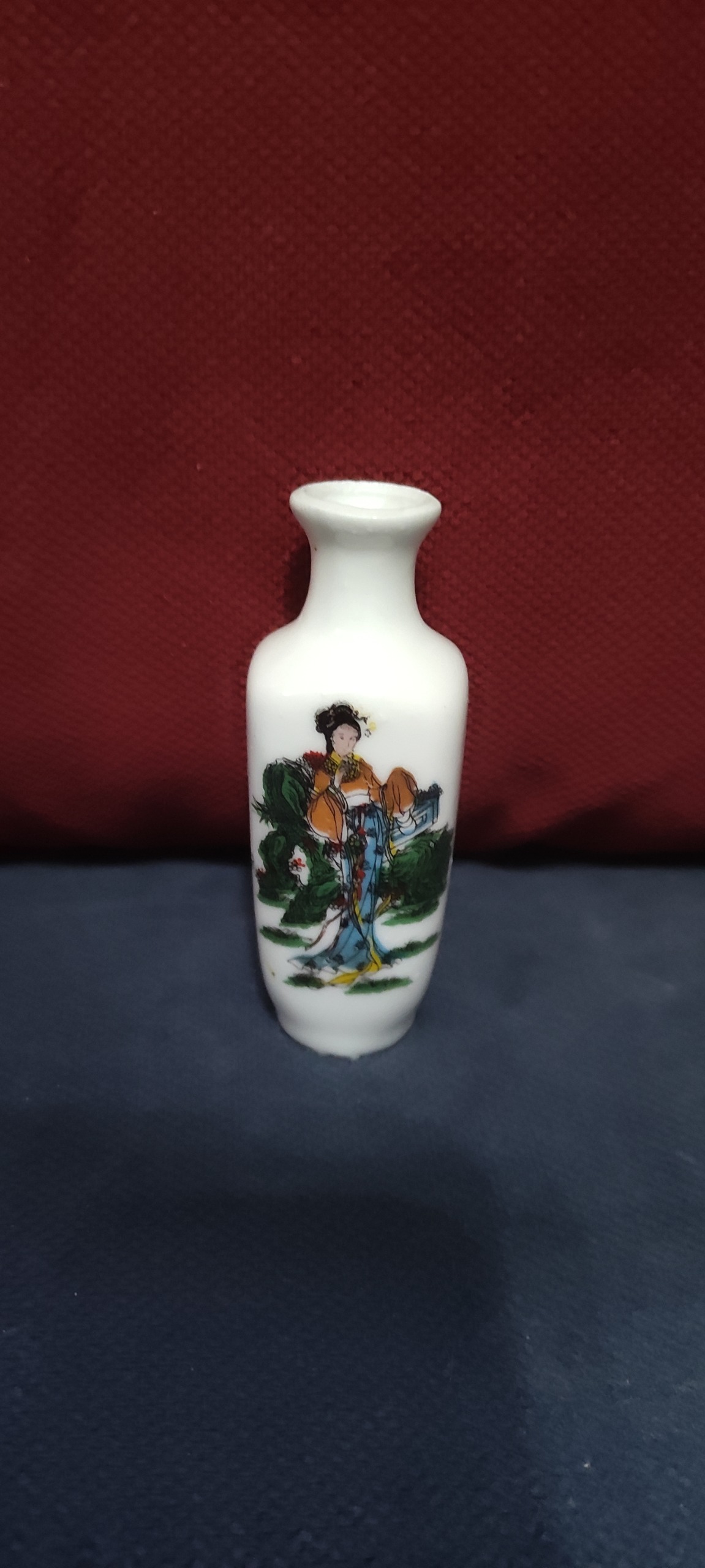 گلدان قدیمی و کوچک، مینیاتوری آنتیک و کلکسیونی با تصویر زن ژاپنی