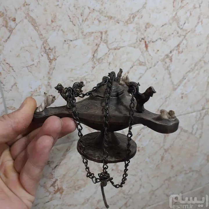چراغ پیه سوز 3فتیله ای برنجی با نقش نگار زیبا