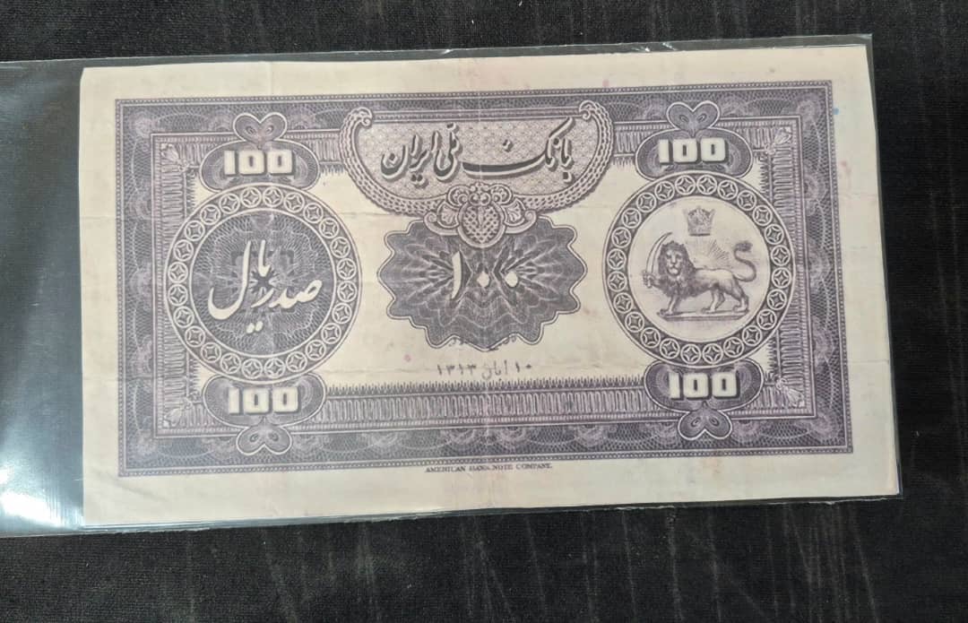 اسکناس 100 ریال کلاه کوچک رضا شاه طرح