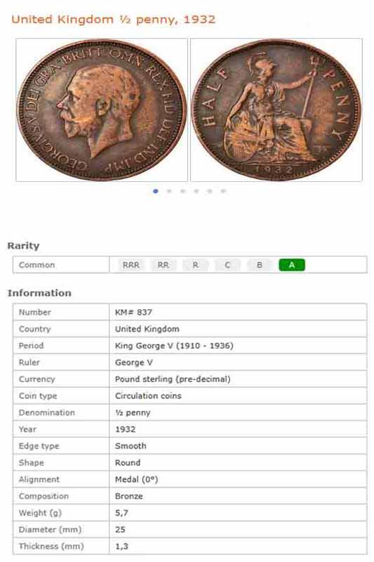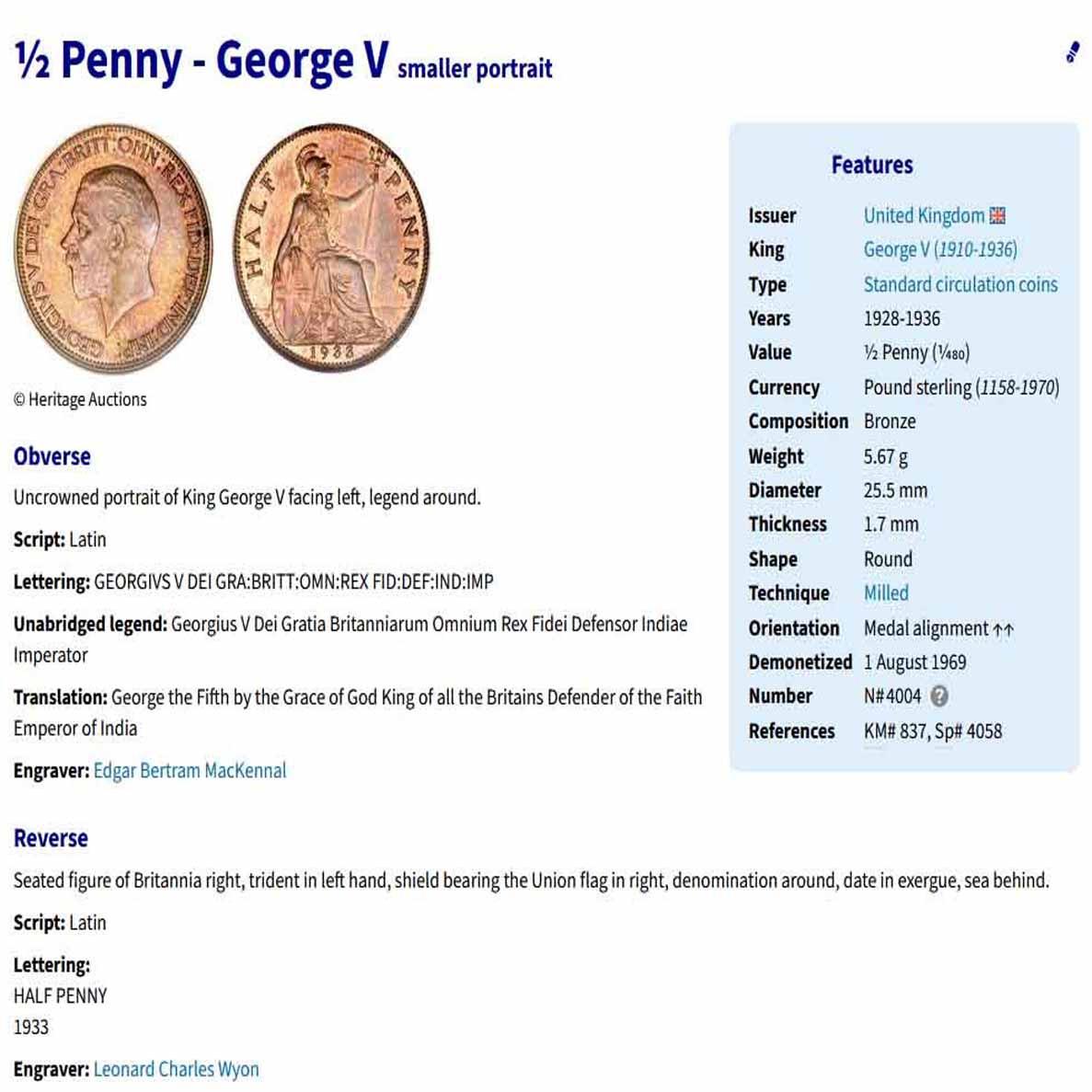 سکه نیم پنی بریتانیا 1932 جرج پنجم (نایاب)