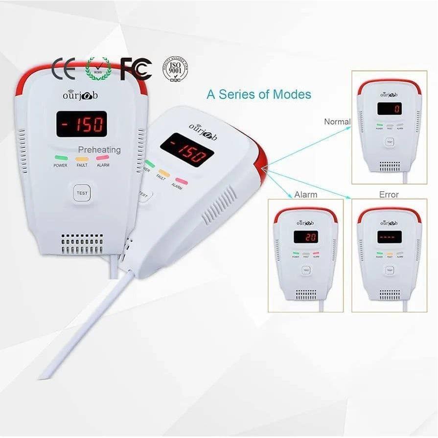 حسگر هشدار نشت گاز طبیعی، مانیتور گاز بوتان، متان، هشدار صوتی، چراغ چشمک زن، نمایشگر دیجیتال (سفید، بدون باتری)