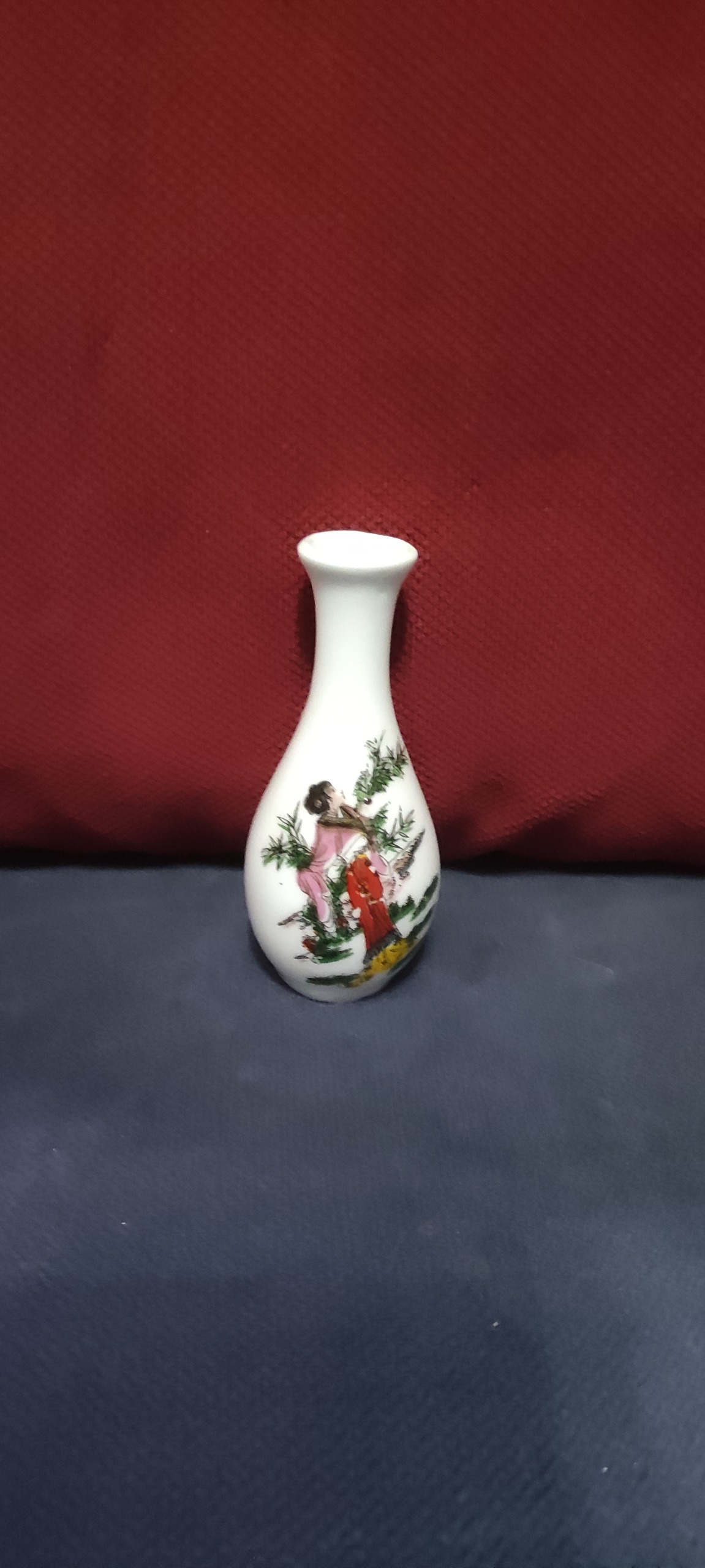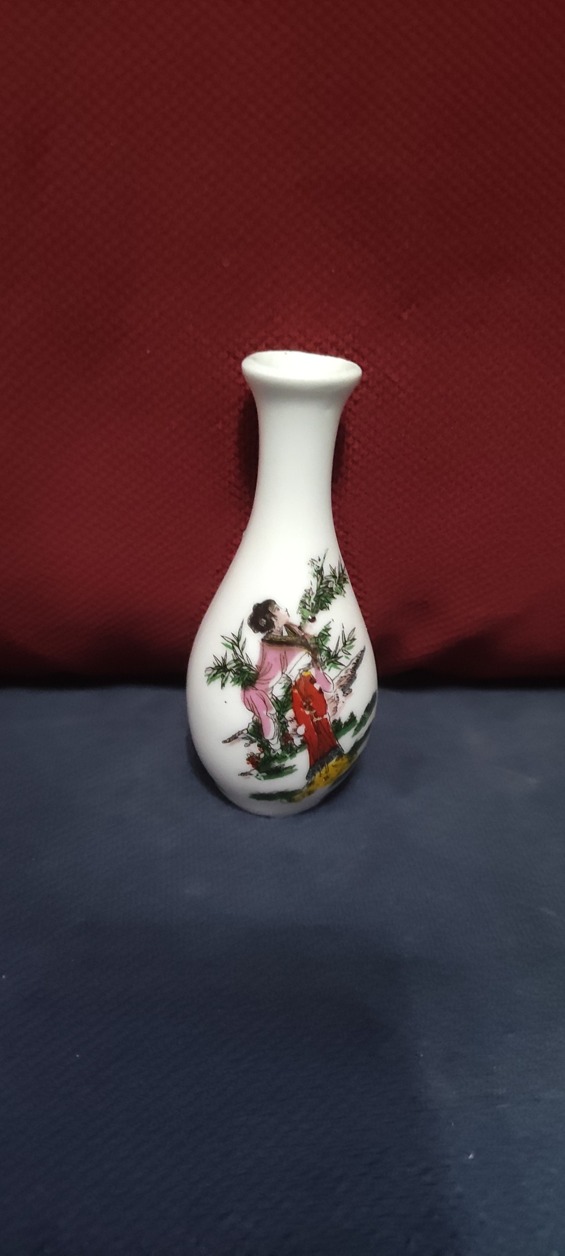 گلدان قدیمی کوچک و مینیاتوری با تصویر زن ژاپنی بسیار زیبا و کلکسیونی و آنتیک