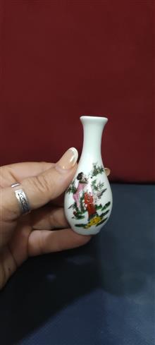 گلدان قدیمی کوچک و مینیاتوری با تصویر زن ژاپنی