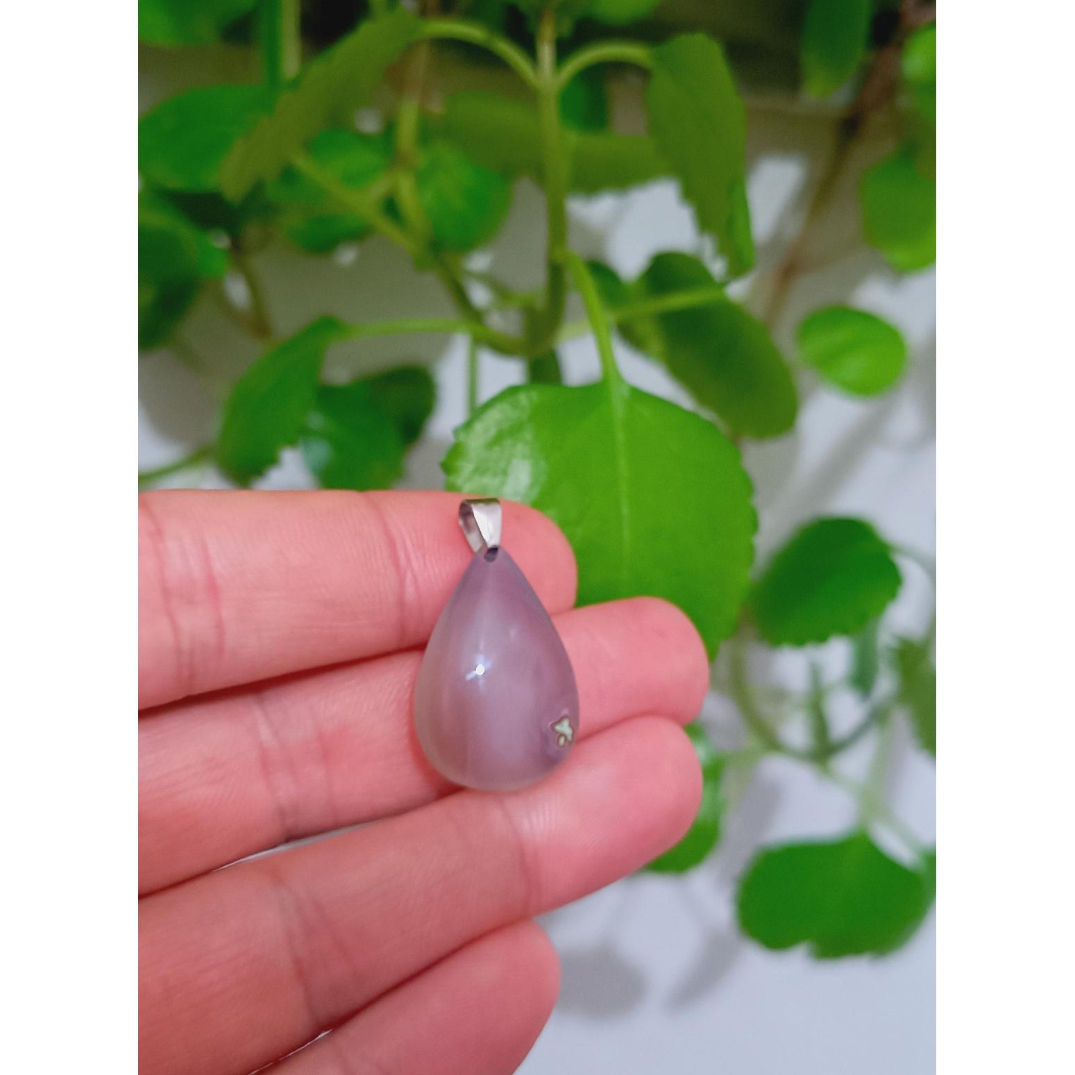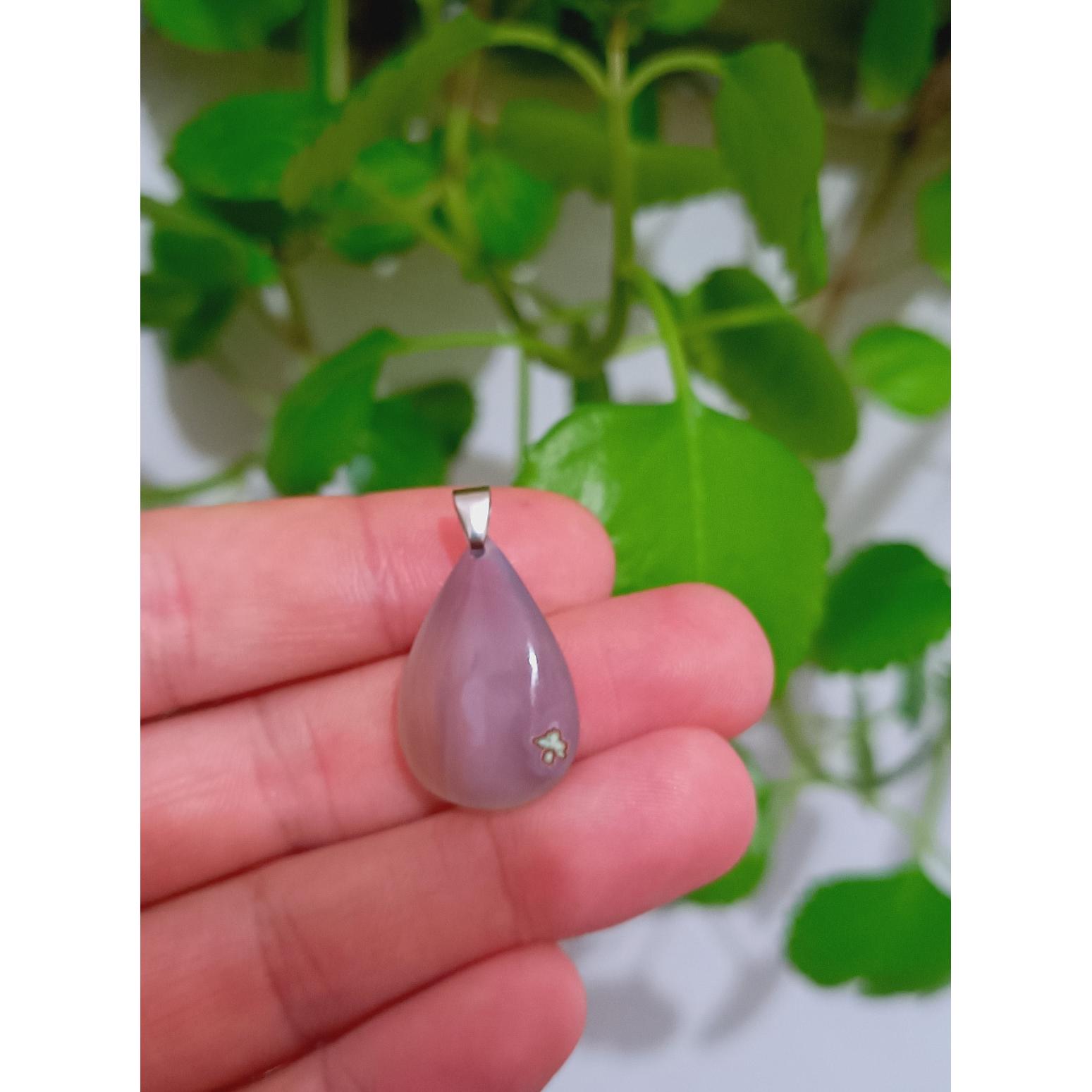 پلاک سنگی عقیق آبدار با یک گل کوچک با تراش اشک