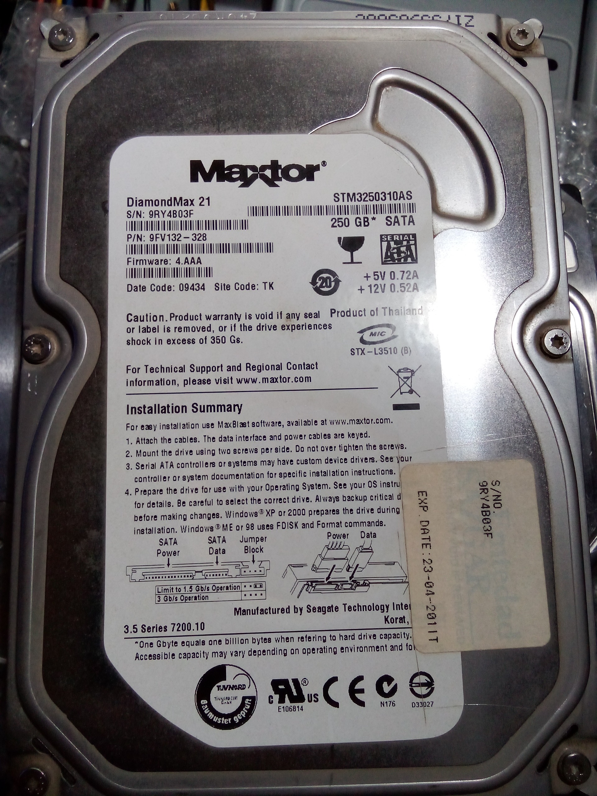 هارد 250 گیگ مکستور