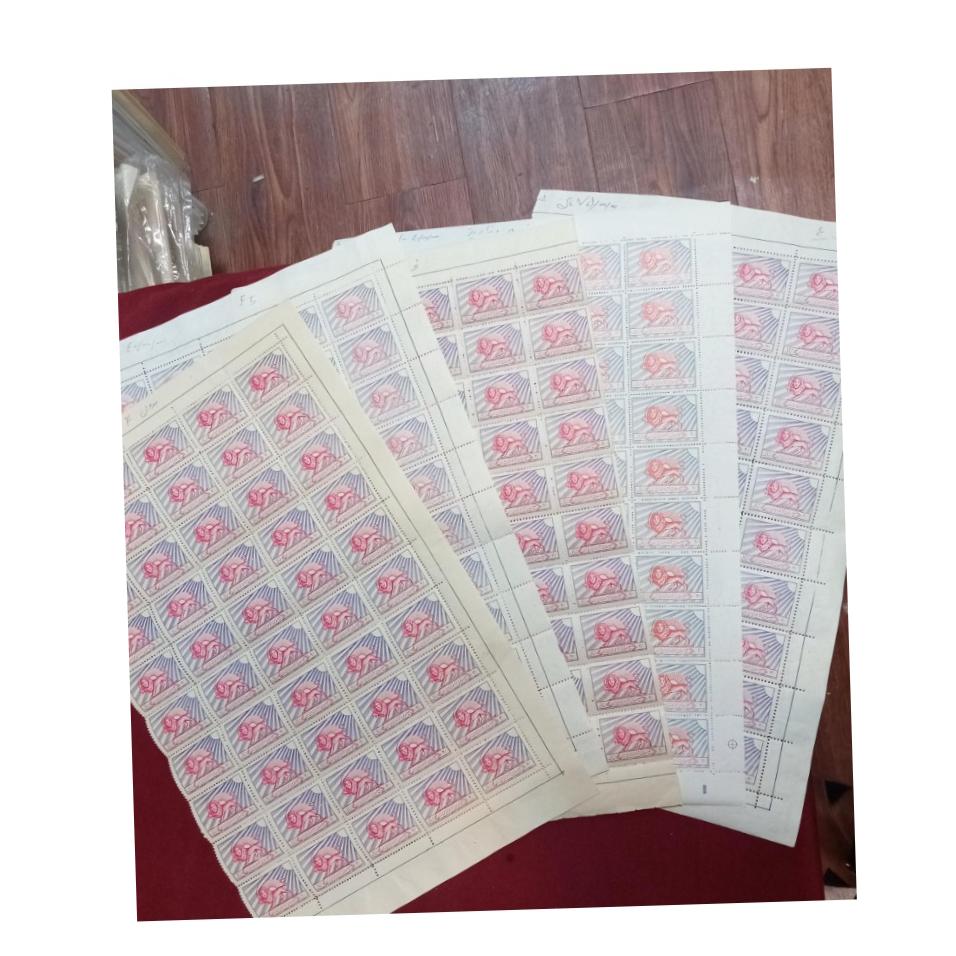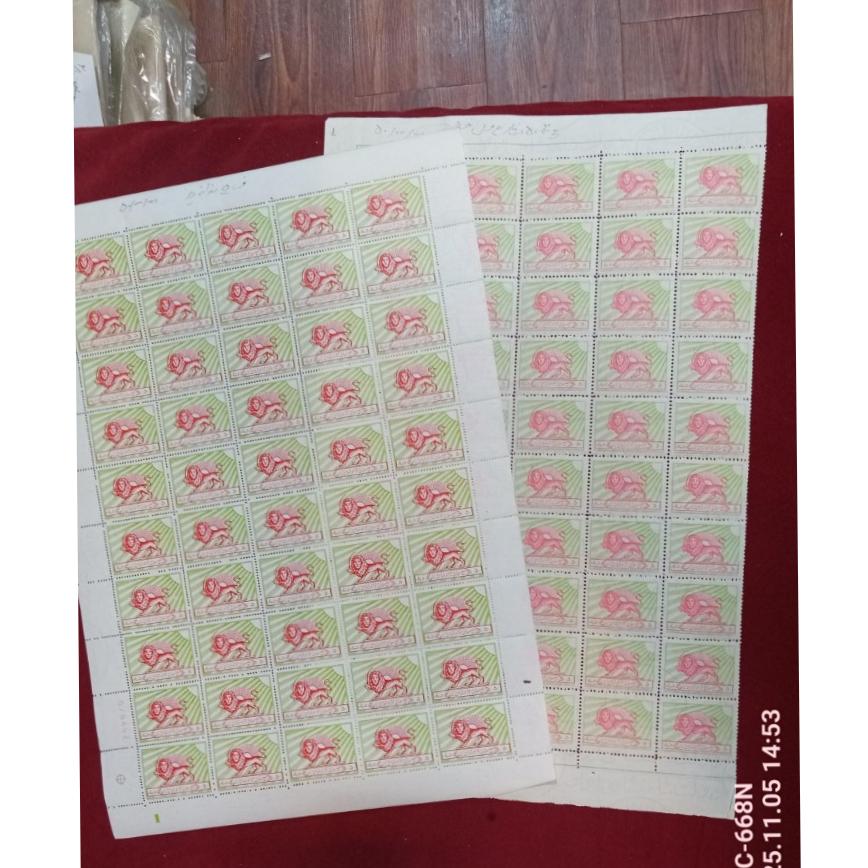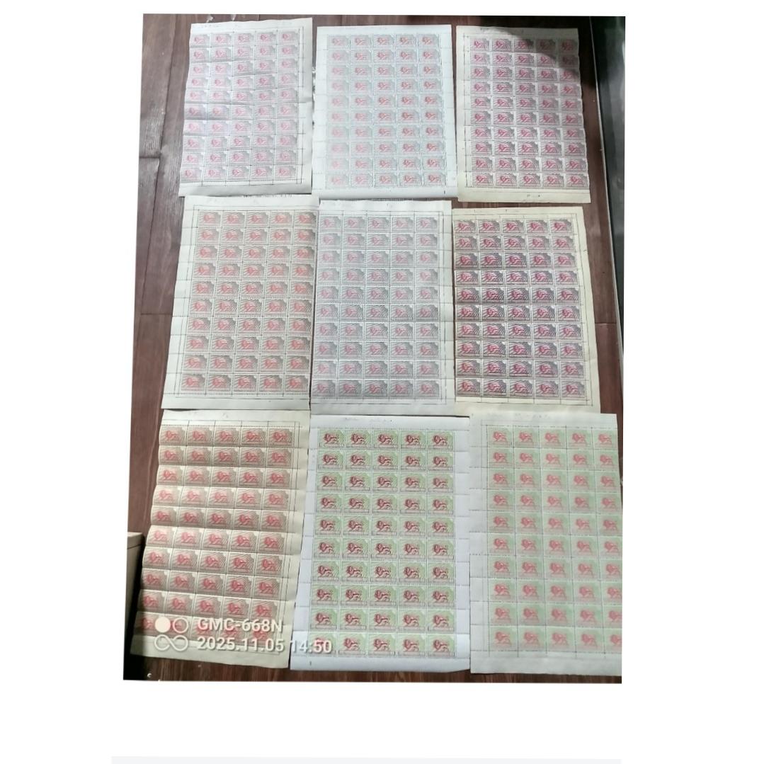 بادرود مطابق عکس یک دو دوره 9ورقی ارسال میشه جمعا 18ورق 50تایی اکثر ورقها یک طرف حاشیه ورق نداره ارزش کاتالوگ 50سری 9رقم54میلیون تومن ارزش بلوک ده برابرتکسری تقریبا200میلیون توضیح بیشتر پیام بدیدارقام 50دینار2تیپ 2ریال 5تیپ 2ونیم ریال یک ورق...4ورق از18ورق