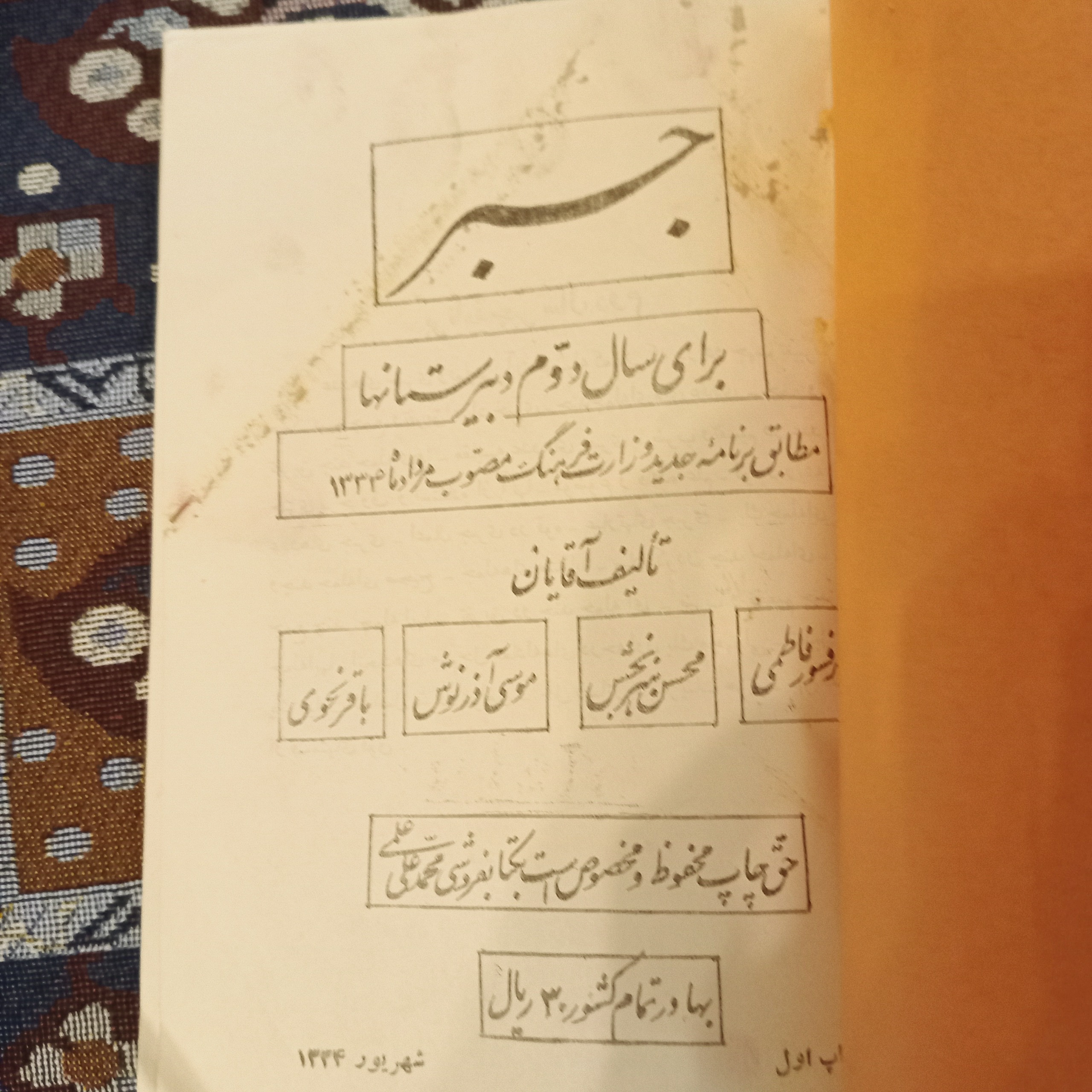 جبر برای سال دوم دبیرستان