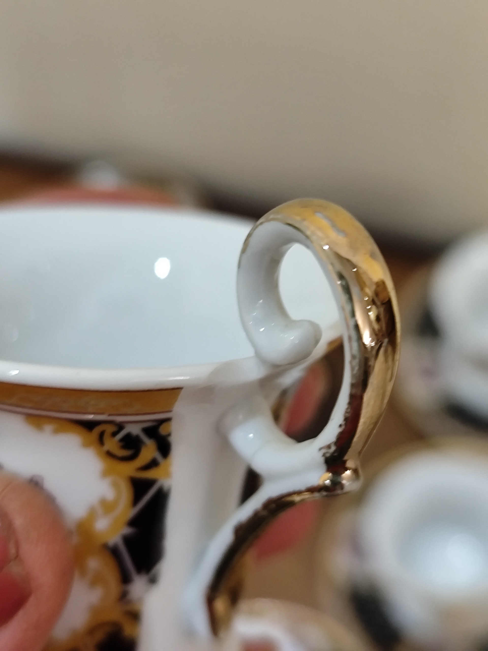 14 پارچه قهوه خوری طاووسی قدیمی بسیار زیبا و ظریف نو ولی دو تا فنجان مورد داره عکسش رو گذاشتم