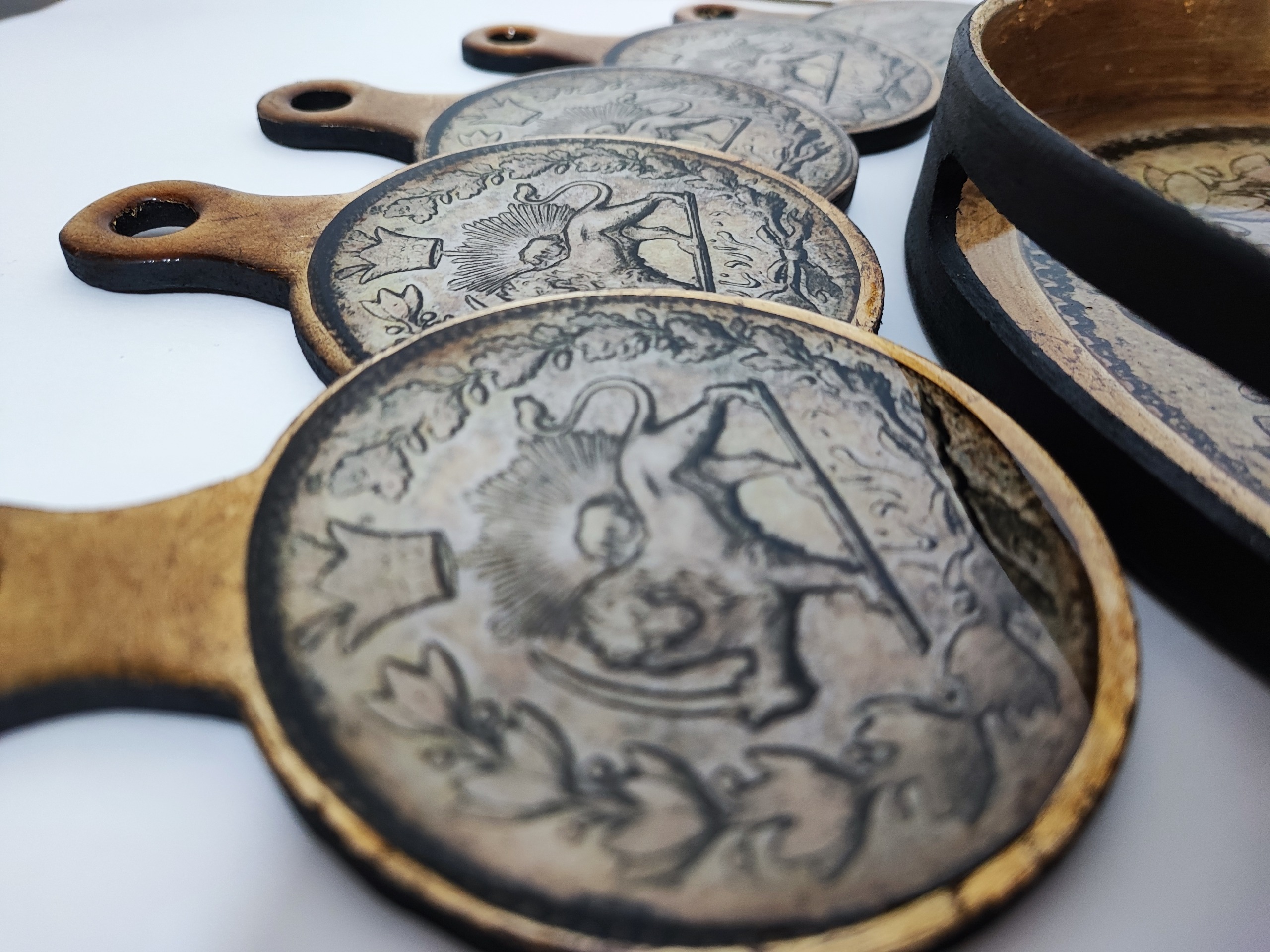 سینی 30 سانتی به همراه 6 عدد زیرلیوانی دسته دار .