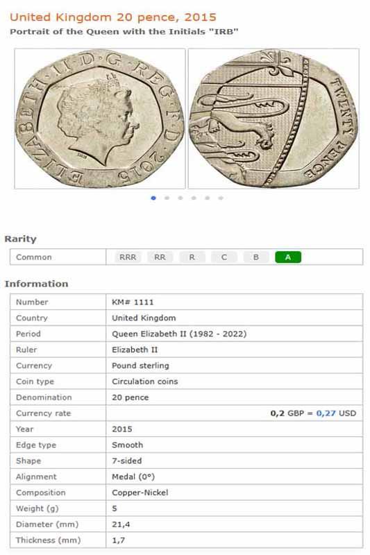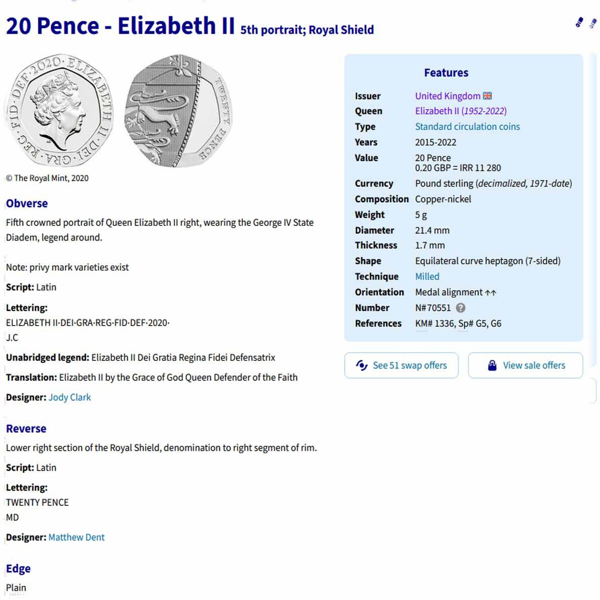 سکه 20 پنی بریتانیا الیزابت دوم 2015 (کمیاب)