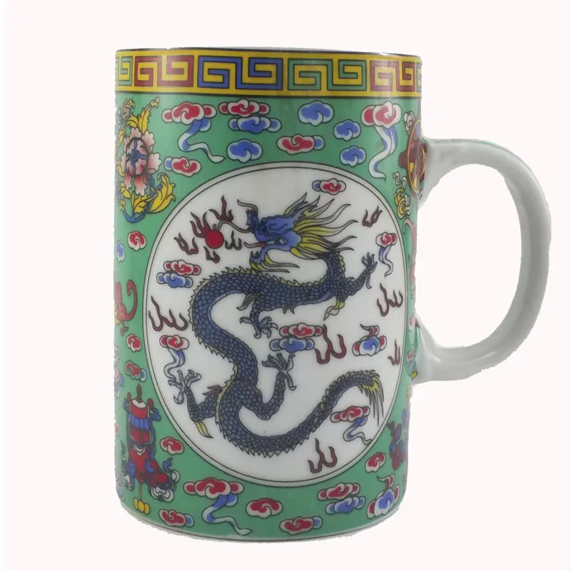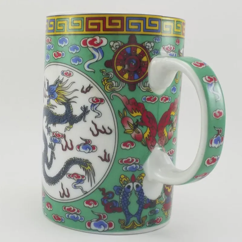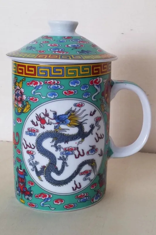 ماگ درب دار ، طرح کلاسیک آثار چینی با تصویر اژدها