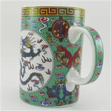 ماگ چینی درب دار طرح اژدها رنگ زمینه سبز