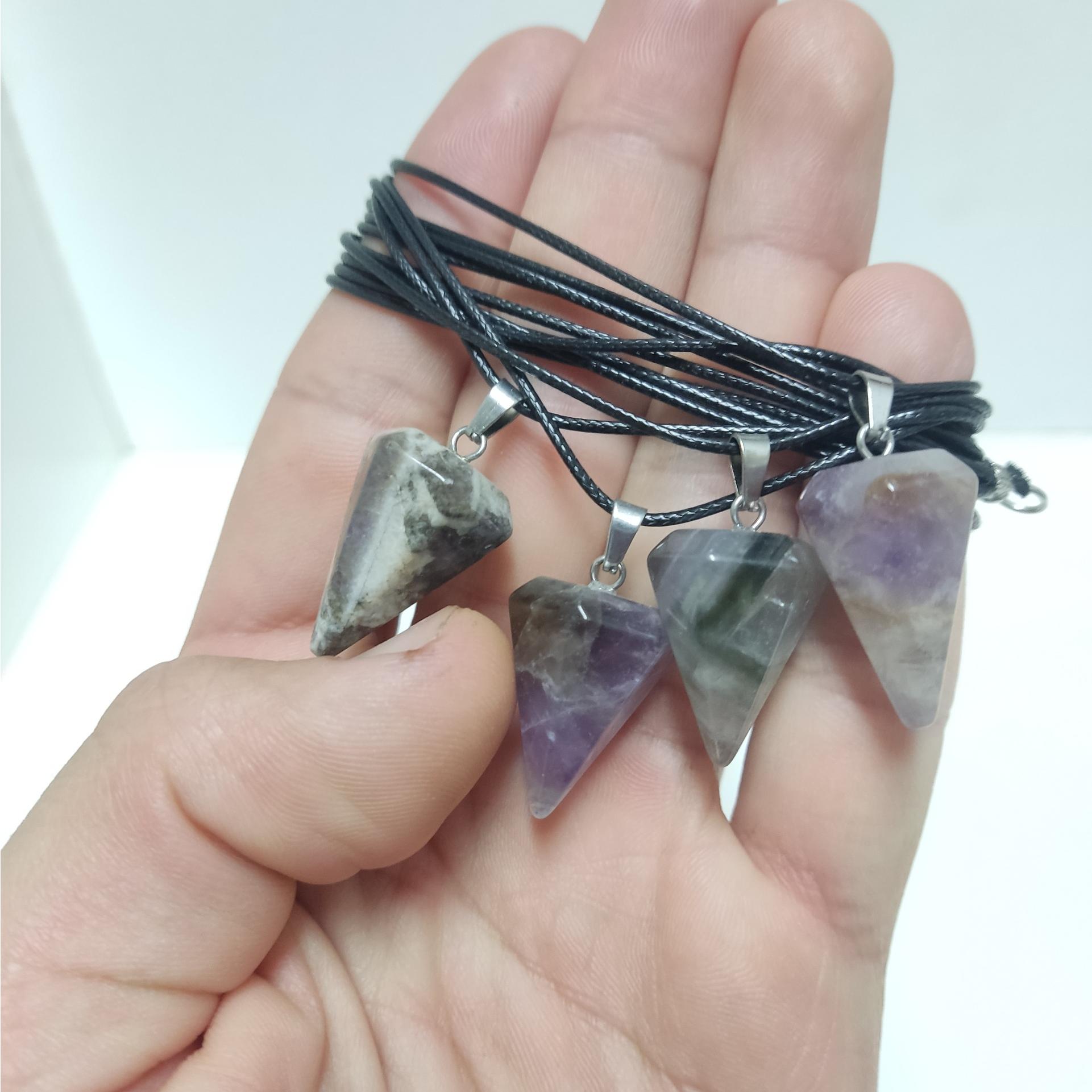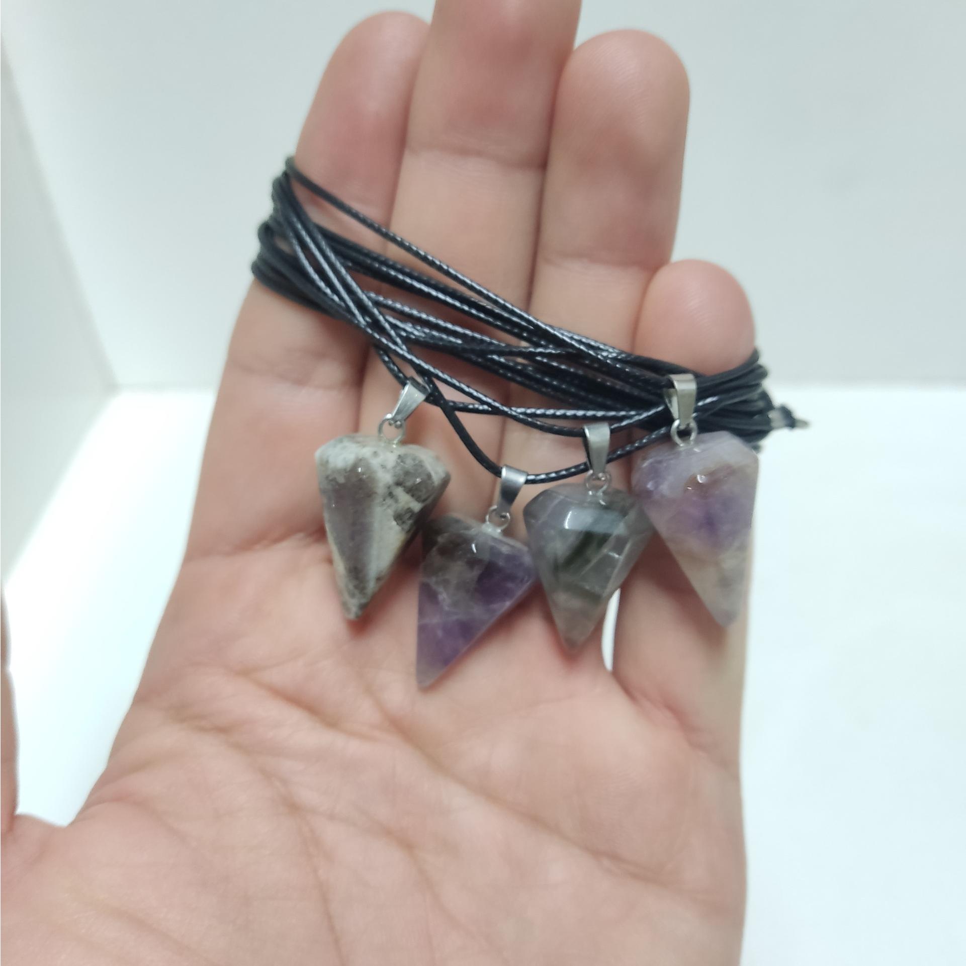 گردنبند های امیتیست تراش الماسی همراه با نخ چرمی گردنبندی براتون ارسال میشه.