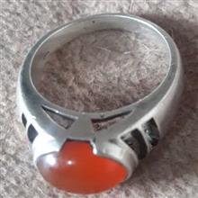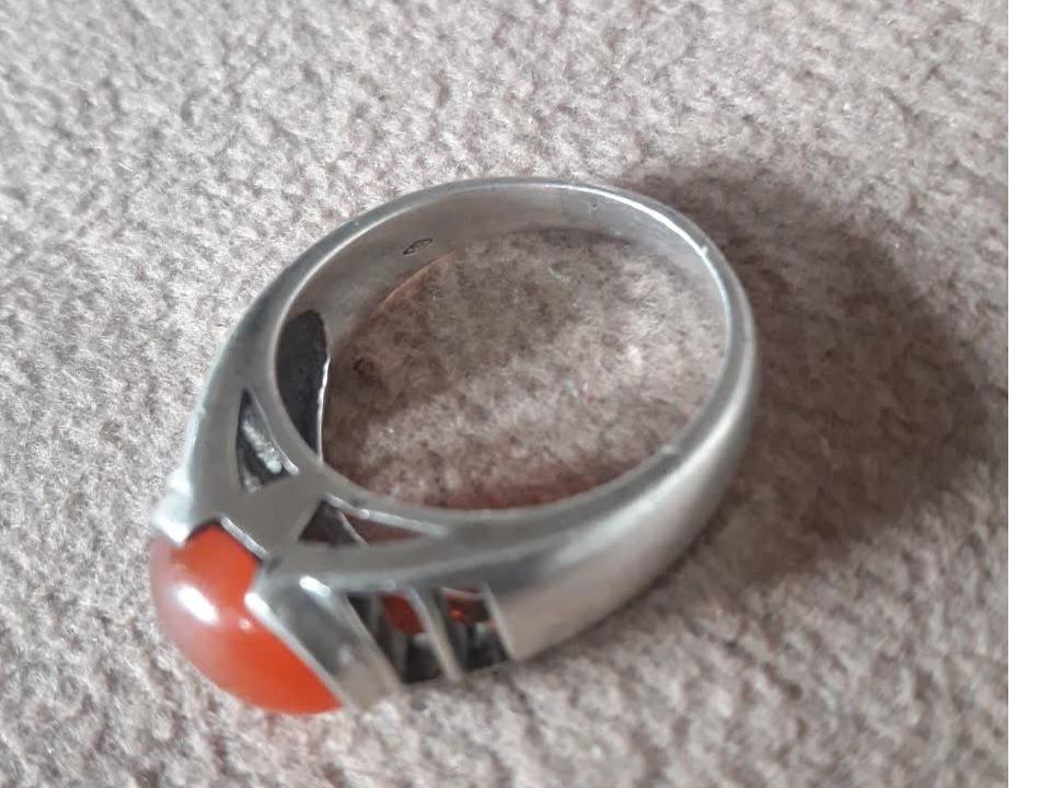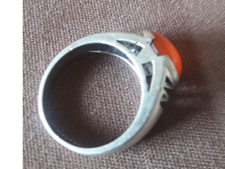 انگشتر نقره 925 با نگین عقیق قرمز بسیار زیبا و خاص. با رکاب محکم و تمیز و مقاوم و زیبا و خاص. اندازه حدود 63 یا 64 باید باشه. نسبتا سنگین. وزنش رو دقیق نمی دونم. یک انگشتر تودل برو و جالب و جذّاب.