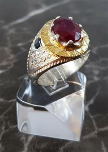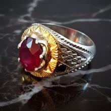 انگشتر نقره دستساز مردانه یاقوت قرمز (کد 11)