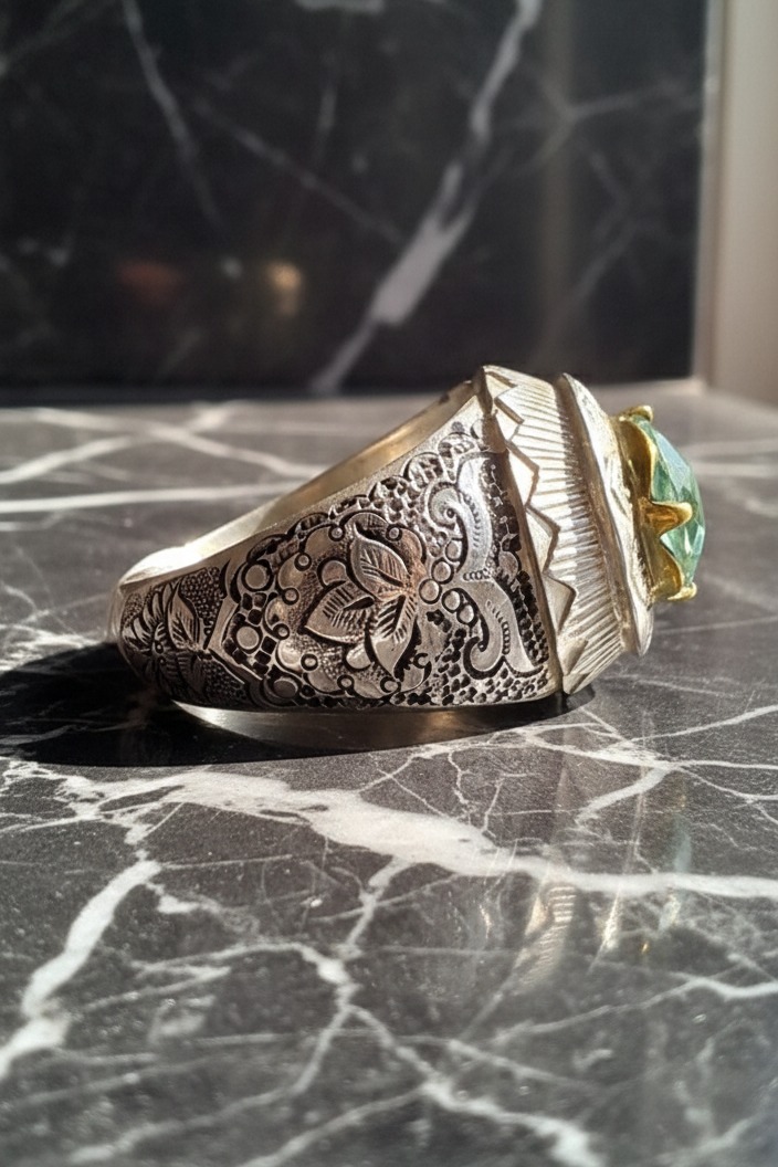 این انگشتر باشکوه مردانه با نگین اصلی موزانایت موزانایت، یکی از درخشانترین و باکیفیتترین سنگهای جایگزین الماس، جلوهای خیرهکننده و استثنایی ایجاد میکند. موزانایت بهدلیل ضریب شکست بالاتر از الماس، نوری چندبرابر درخشانتر منعکس میکند و همین ویژگی آن را به نگینی کمنظیر و لوکس برای انگشترهای ویژه تبدیل کرده است. وزن چشمگیر 106.45 قیراط و برش گرد برلیان، زیبایی این سنگ را به اوج میرساند و در هر نوری، برق و شعف خاصی ایجاد میکند. رکاب دستساز نقره 925 با قلمزنی ظریف و مخراجکاری حرفهای 10 عدد برلیان اصل، جلوهای دوچندان به این اثر داده و آن را از یک انگشتر ساده به یک قطعه ارزشمند، کلکسیونی و کمیاب تبدیل کرده است. درخشش ترکیبی موزانایت و برلیانها، این انگشتر را به انتخابی ایدهآل برای آقایانی تبدیل میکند که بهدنبال ابهت، کیفیت ممتاز و جلوهای منحصربهفرد هستند.