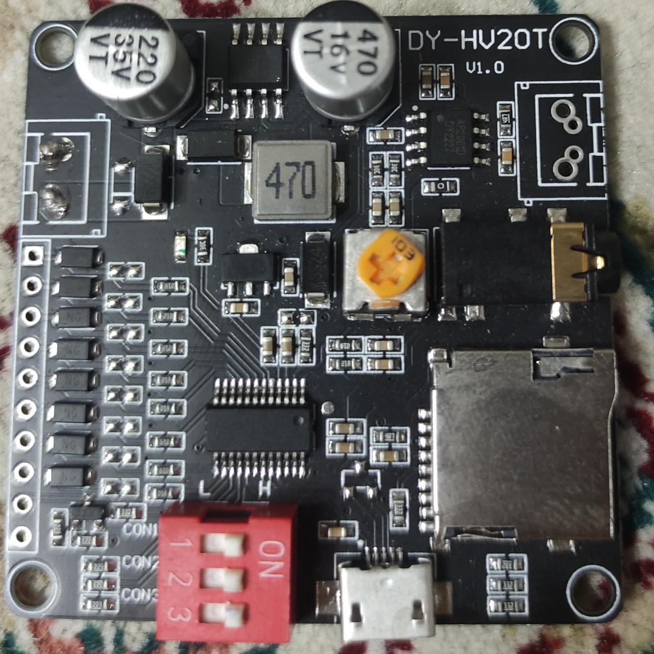 دو عدد ماژول پخش صدا مدل DY-HV20T به همراه دو عدد کارت حافظه مدل Extra 533x از برند Vicco man با ظرفیت 8 گیگابایت موجود است. ماژول موردنظر با ولتاژ 6 تا 35 ولت تغذیه میشود و قابلیت اتصال به یک اسپیکر 20 وات 4 اهم یا 10 وات 8 اهم را دارد. امکان ارتباط سریال با این ماژول وجود دارد و همینطور قابلیت پشتیبانی از کارت حافظه تا حجم 32 گیگابایت را دارا میباشد. هر ماژول با قیمت 650 هزار تومان و هر کارت حافظه با قیمت 300 هزار تومان تقدیم میشود. ماژولها و کارت حافظهها کاملا نو و سالم میباشند و یک بار هم استفاده نشدهاند.