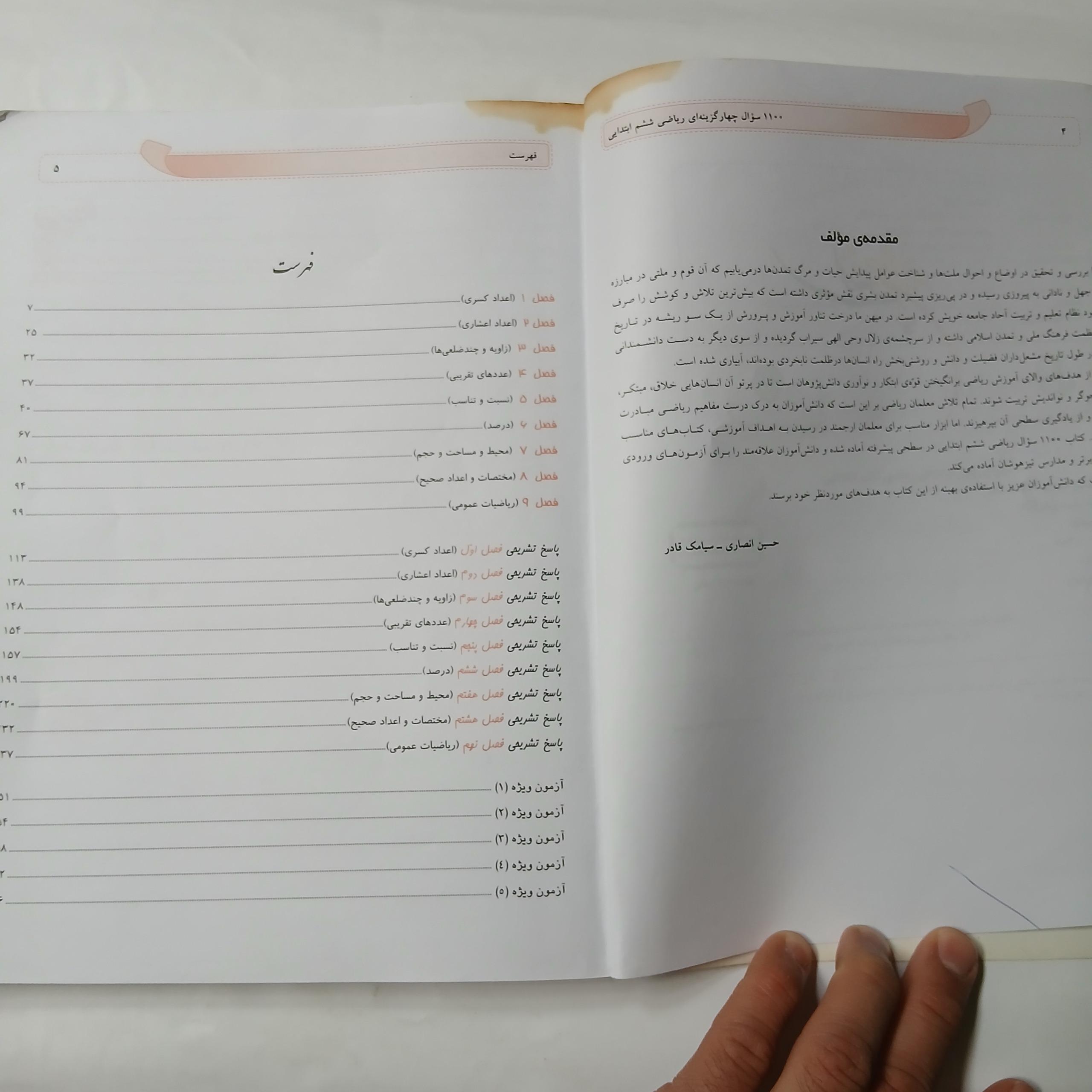 1100 سوال چهار گزینه ای ریاضی ششم ابتدایی د