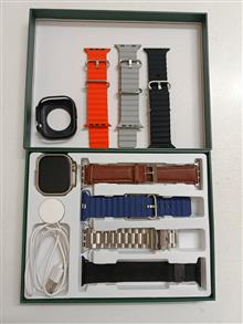 دارای شارژر - جعبه - گلس - قاب سیلیکونی و 7 عدد بند اورجینال به مدل ها و رنگ های مختلف که توسط پین ساعت محکم میشوند.