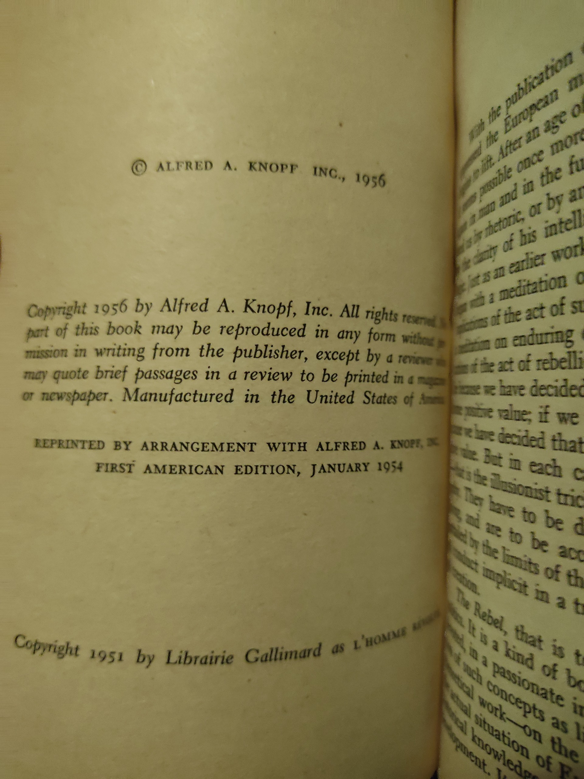 #عصیانگر #آلبر_کامو #انتشارات_وینتیج کیفیت مطابق تصویر گوشه بالای جلد و چند صفحه نمدیدگی مختصری دارد. 550 تومان 1954 #چاپ_آمریکا ، قطع پالتویی شومیز.