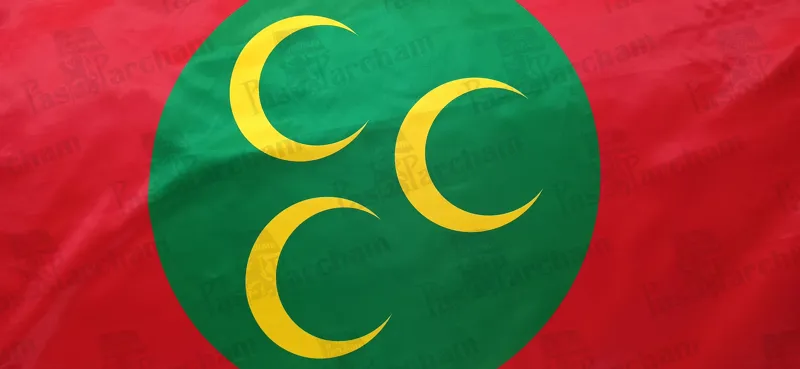 رنگ سبز نیز رنگ دین اسلام و رنگ قرمز نشانه خون شهدای راه عثمانی است.