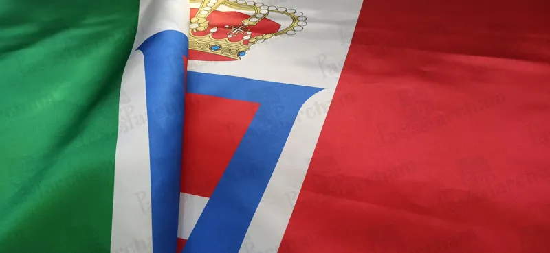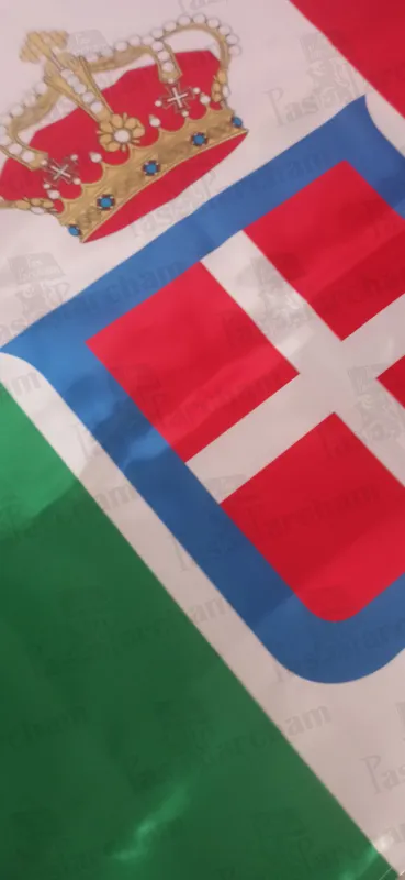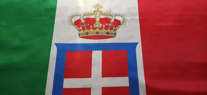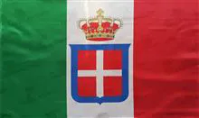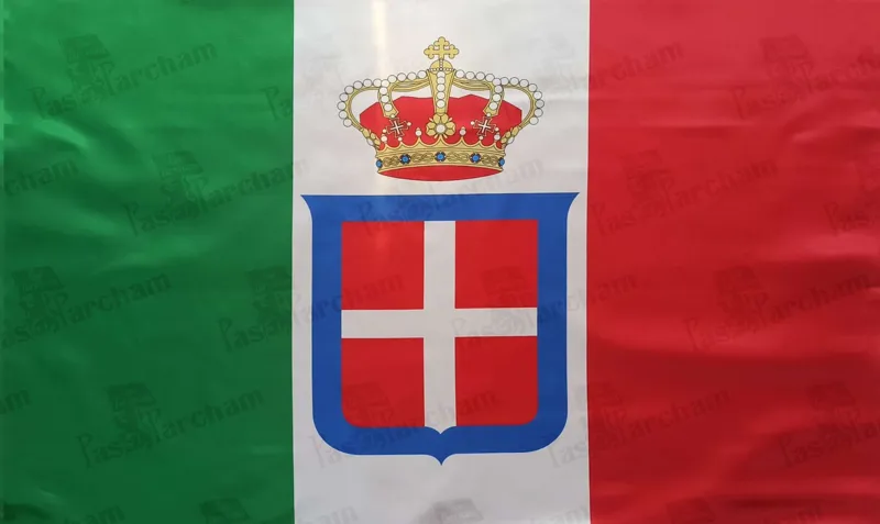 نشانی که در میان پرچم قرار دارد، نشان خاندان سلطنتی این کشور معروف به نشان -ساردنی و پیدمونت- میباشد. پس از سقوط نظام ناپلئونی در اوایل قرن 19 دولت ساردنی و پیدمونت کار اصلی برای اتحاد سرزمین ایتالیا را، با درگیر شدن با اتریش و سایر دولت های ایتالیایی انجام داد.