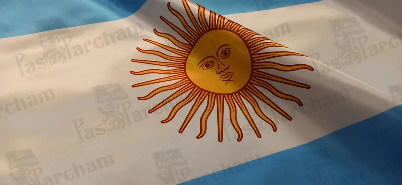 پرچم آرژانتین (خورشید در این پرچم نشان خورشید ماه می، زمان انقلاب آرژانتینی ها علیه پادشاهی اسپانیا در قرن 19 می باشد)