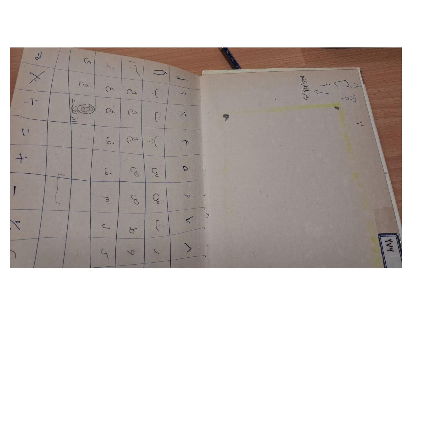 در صفحات سفید و ابتدایی کتاب جایی که هنوز متن کتاب شروع نشده جدول کشیده شده و با خودکار خط زده شده