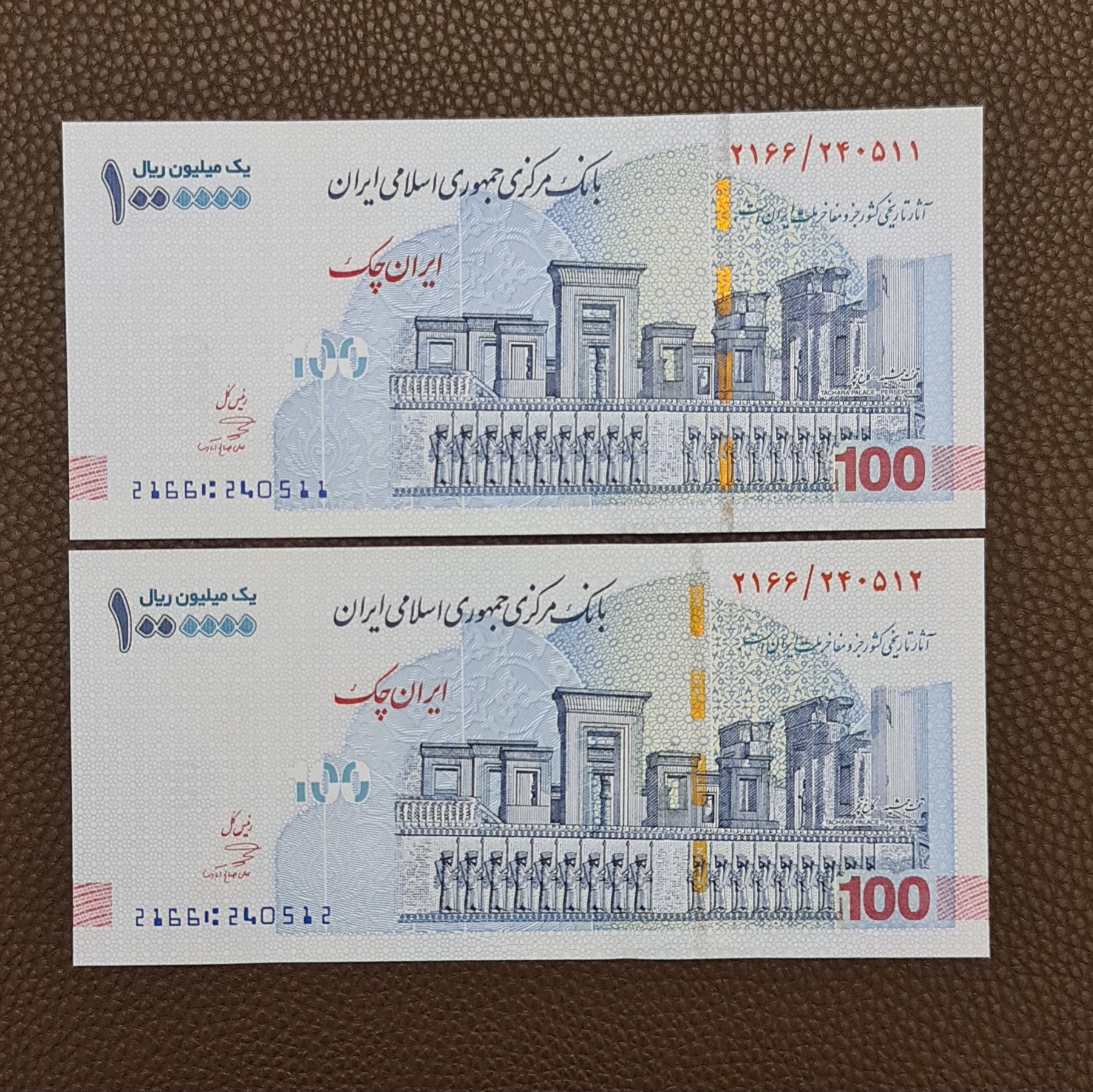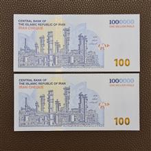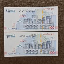 جفت تراول اسکناس 1000000 ریال (100 هزار تومان) کاخ تچر امضا صالح آبادی