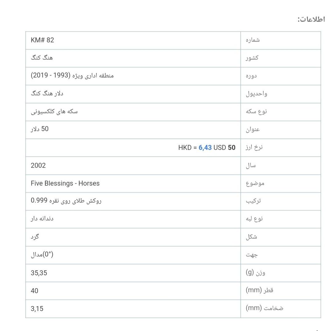 سکه 50دلارهنگ کنگ 35گرمنقره روکش طلا ضرب محدو